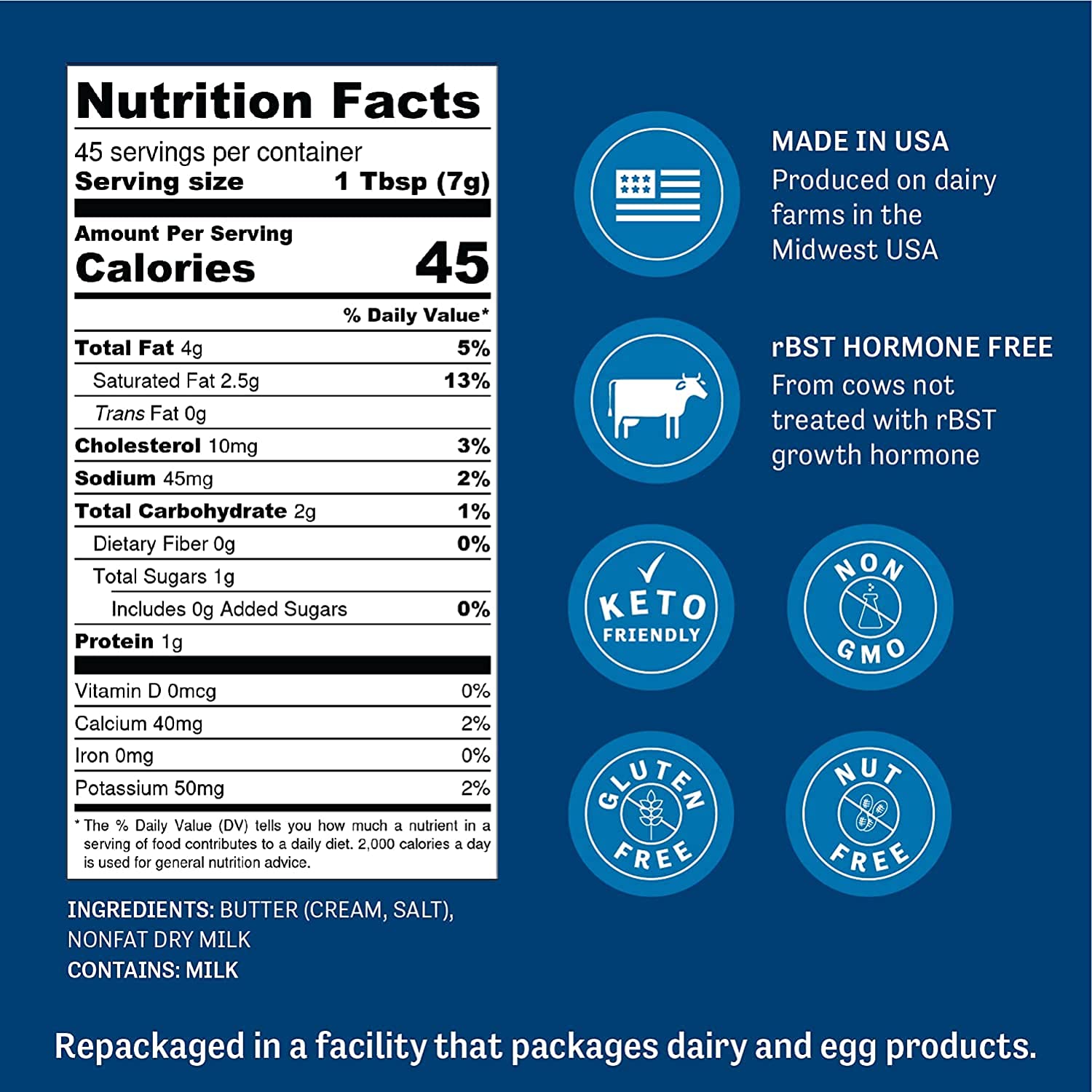 Ingredients: Butter (Cream, Salt), Nonfat Dry Milk