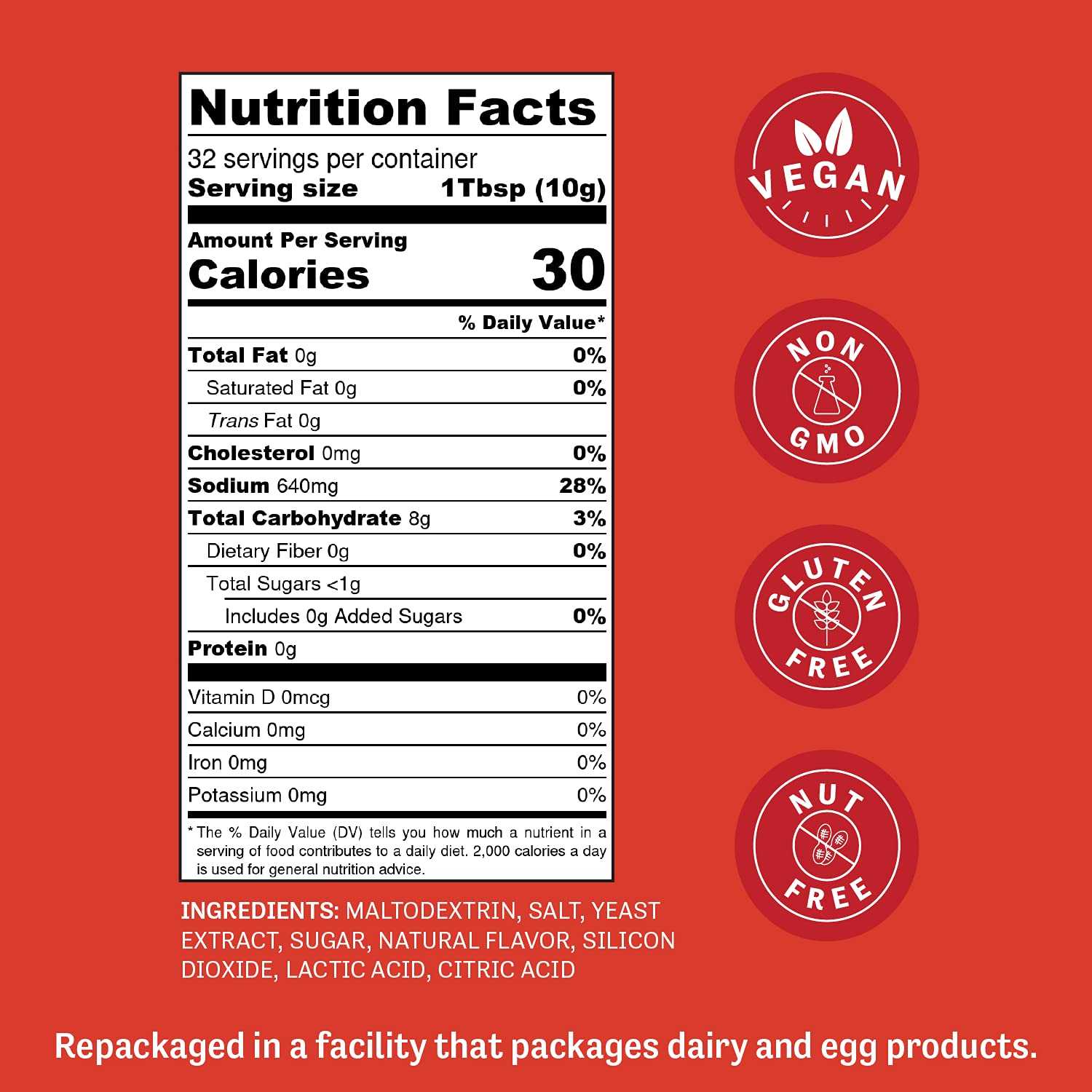 Ingredients: Maltodextrin, Salt, Yeast Extract, Sugar, Natural Flavor, Silicon Dioxide, Lactic Acid And Citric Acid