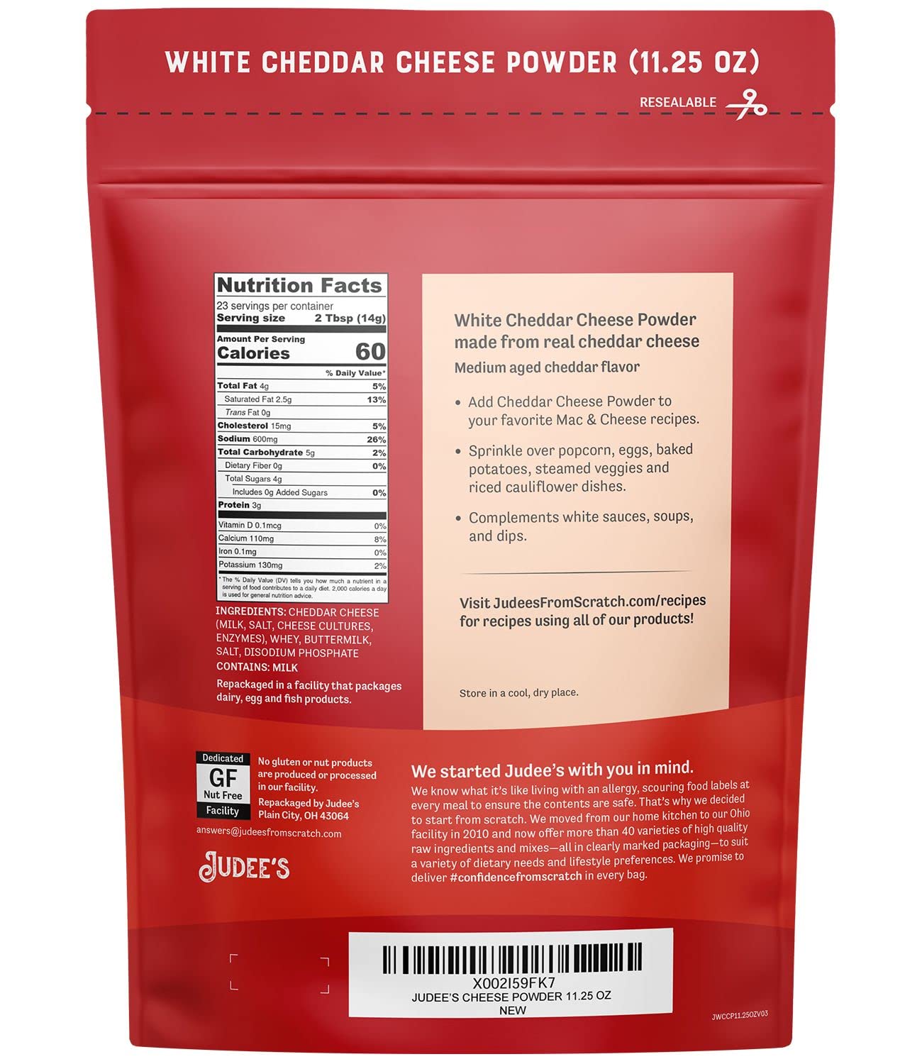 Judee’S White Cheddar Cheese Powder 11.25Oz - 100% Non-Gmo, Rbst Hormone-Free - Gluten-Free & Nut-Free - Made From Real Cheddar Cheese - Made In Usa - Great In Dips, Sauces, And Baked Goods