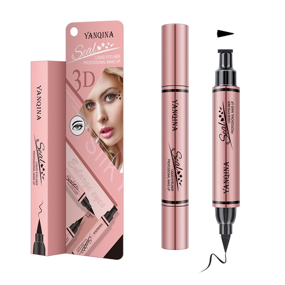 Package included: 1 * big volume dual-ended eyeliner pen Q: Is the stamp suitable for both left and right eyes A: Yes, the shape is symmetrical and designed for each eye application. Direction: 1) Stamp: Position the stamp at the edge of your lash line and press gently. 2) Line: Use the felt tip eyeliner to connect the wing along the upper lash line. # More info: 1) Net Volume: 3.5ml / 0.12 fl.oz. 2) The pen is film-coated and comes with a box. 3) Waterproof and Smudge proof. Easy to remove with soap or cleansing milk. 4) Any problems, please contact us via Amazon messages, we will reply you within 24 hours