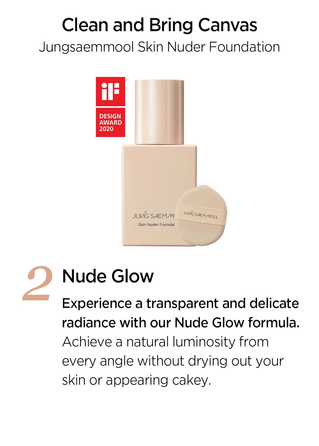 Jungsaemmool Official Skin Nuder Foundation 1.0 Fl Oz (30 Ml) With Exclusive Puff (N Light) | Korean Foundation | Makeup Artist Brand | Flawless Coverage | Dewy Finish | Long-Lasting