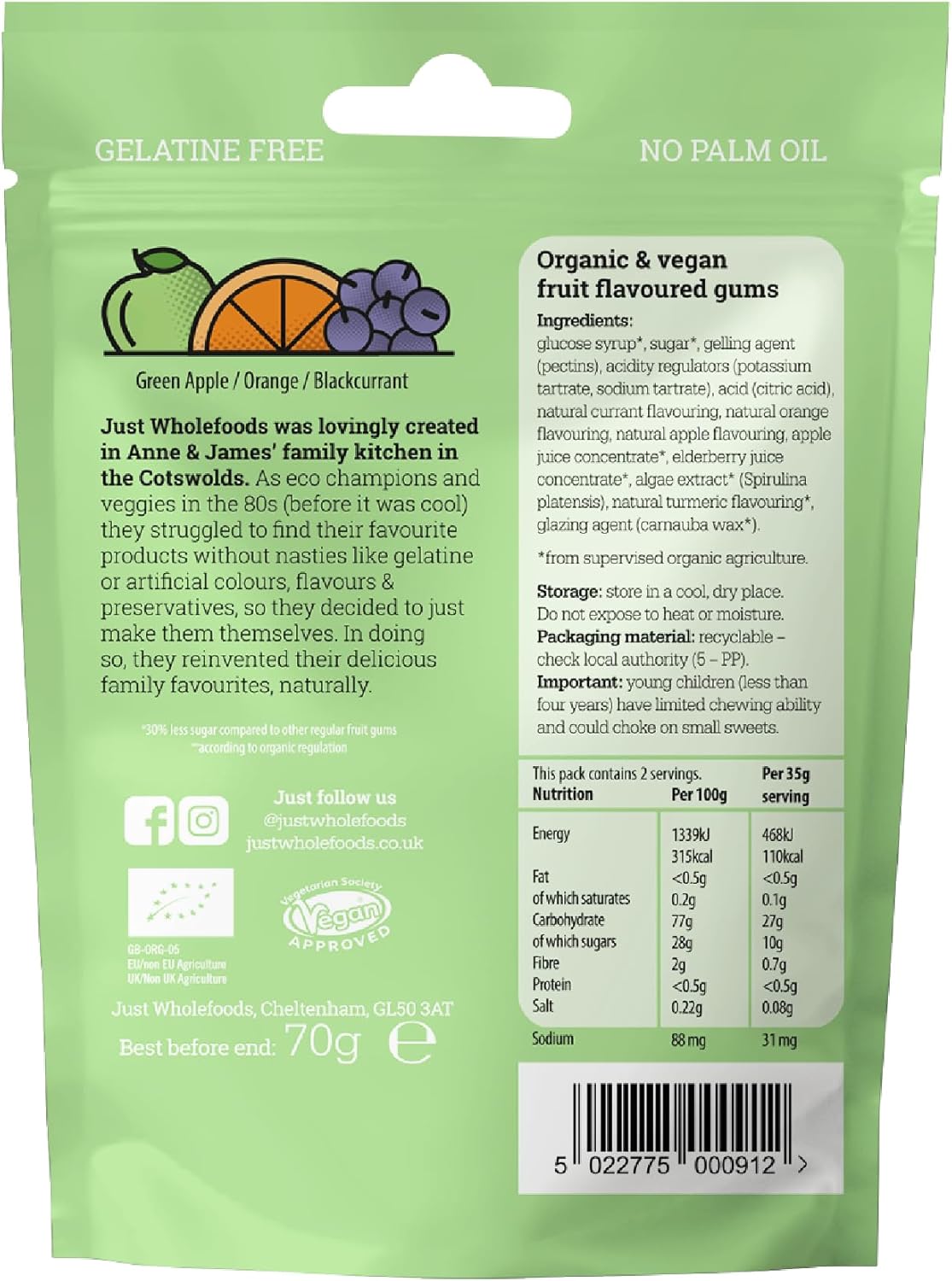 Just Wholefoods Organic Gummy Sweets 10 X 70G | Vegan, Gluten Free Fruit Flavoured Sweets | Plant-Based, No Artificial Ingredients And Reduced Sugar (Bears)