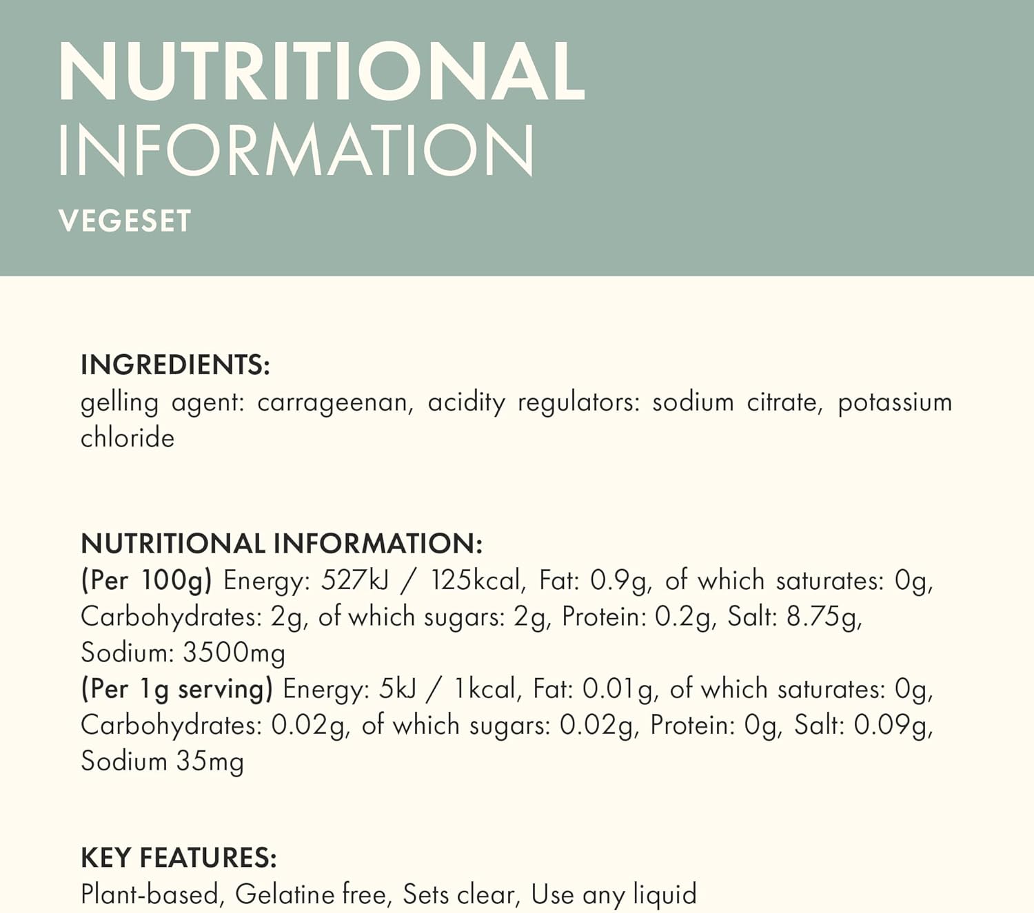 Just Wholefoods Vegeset 10 X 25G | Carrageenan, Vegan Gelatine Alternative, Sets Clear | Sets Up To 50 Pints Of Any Liquid