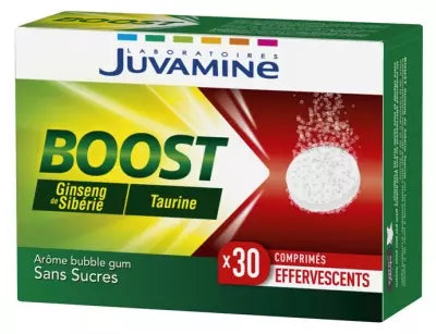 Juvamine Boost Ginseng Taurine 30 Effervescent Tablets Is A Food Supplement Based On Vitamins, Plants, Caffeine And Taurine With Sweeteners To Promote Energy: Siberian Ginseng Is Known For Its Properties Of Physical And Intellectual Stimulant, Guarana Reduces Intellectual Tiredness, Vitamin C Contributes To Reduce Tiredness, The Formula Also Contains Taurine. Bubble Gum Flavour. Sugars Free. Made In France