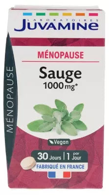 Juvamine Sage 1000Mg 30 Tablets Is A Food Supplement Based On Sage. Menopause: Sage Helps To Diminish The Disagreements Linked To Menopause (Hot Flashes, Night Sweats...) And Promotes Remineralisation Of Skeleton Structure Modified After Menopause. Menstruations: Traditionally, Sage Is Used To Contribute To The Well