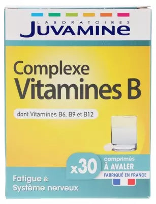 Juvamine Vitamin B Complex 30 Capsules Is A Food Supplement That Guarantees 100% Of The Daily Requirement Of 8 B Group Vitamins In A Single Tablet. Vitamins B2, B3, B5, B6, B9 And B12 Help Reduce Fatigue. Vitamins B6, B9 And B12 Contribute To The Normal Functioning Of The Immune System. Vitamin B2 Helps Maintain Normal Vision. Vitamins B1, B3, B8, B9 And B12 Contribute To Normal Psychological Functions. Vitamin B12 Contributes To The Normal Functioning Of The Immune System. Made In France