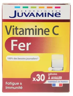 Juvamine Vitamin C Iron 30 Capsules Is A Food Supplement Containing Vitamin C And Iron. Every Day, The Body Needs Iron To Function Properly And Stay In Top Form. Iron Contributes To The Normal Transport Of Oxygen In The Body. Iron Also Contributes To Normal Cognitive Function And Energy Metabolism. Iron Deficiency Can Occur In Certain Life Circumstances, Notably For Women During Menstruation, Pregnancy Or Breastfeeding, Athletes Or People On Special Diets. One Capsule Of This Dietary Supplement Guarantees 100% Of Daily Iron Requirements, In A Microencapsulated Form Of A Technical Ingredient: LipoferĀ®. Microencapsulation Is A Technique That Enables The Active Ingredient To Resist The Heat And Acidity Of The Stomach. Iron Contributes To The Normal Functioning Of The Immune System And Reduces Fatigue. Vitamin C Helps Reduce Fatigue And Increases Iron Absorption. Made In France