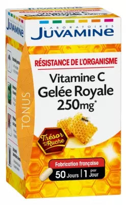 Juvamine Vitamine C Royal Jelly 250Mg 50 Capsules Is A Food Supplement Created To Enhance The Resistance Of The Body. The Royal Jelly, True Treasure Of The Hive, Is A Rare And Precious Substance Destined To Feed The Queen Of The Bees. Within The Hive, The Queen Feeds Exclusively On Royal Jelly And Has An Exceptional Longevity Of 5 Years On Average. The Vitamin C Is An Essential Nutrient Known For Its Many Virtues. It Contributes To The Normal Functioning Of The Immune System. This Allows The Bod