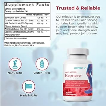 Juvenon Reprieve Capsules (60 Capsules) - Fast-Acting, Joint Comfort Supplement And Effective Joint Support Solution, Research Verified
