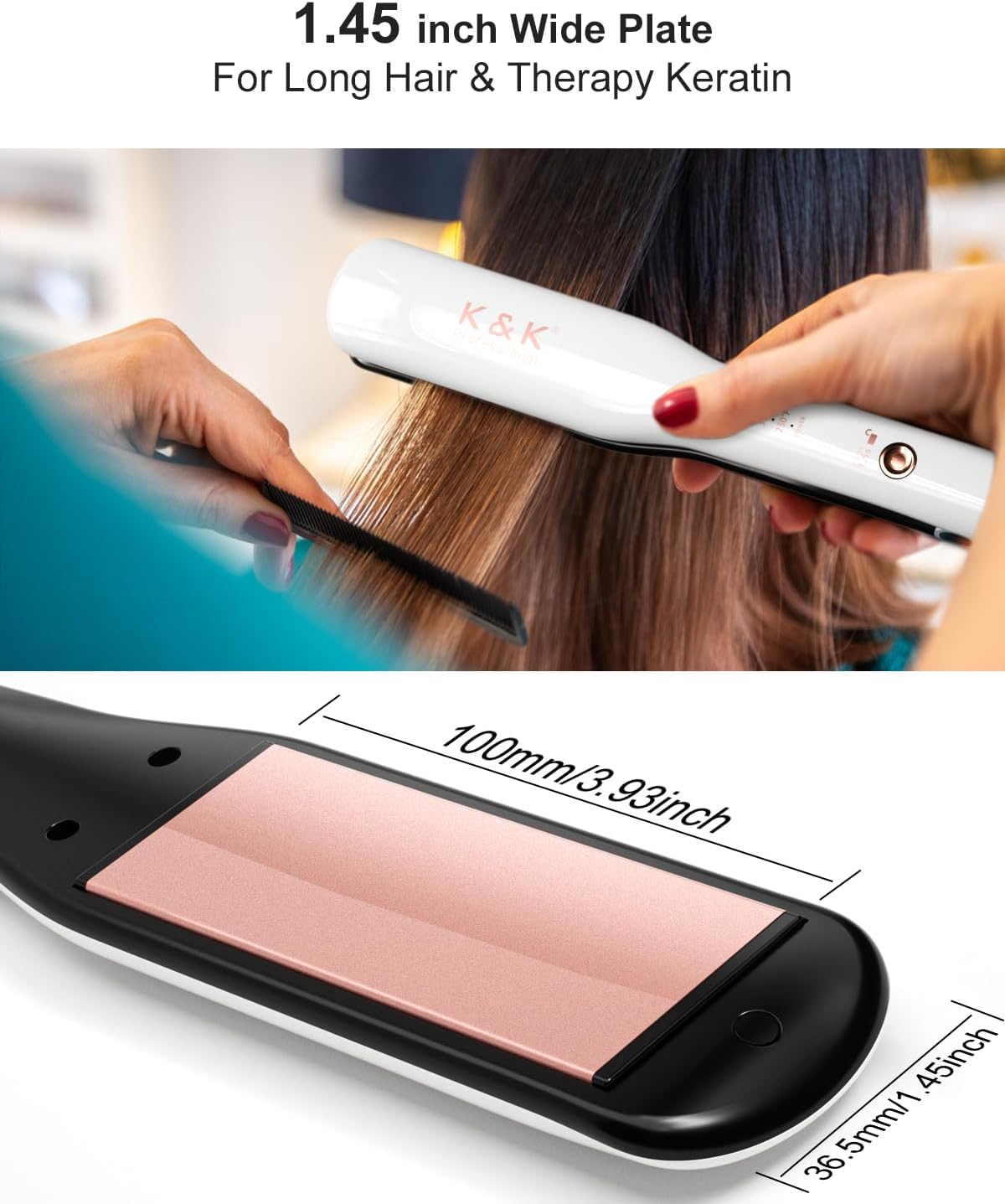 K&K Wide Hair Straightener Iron, Ceramic Tourmaline Coating 1.5 Inch Flat Iron For Long Hair, Professional Keratin Therapy Straighteners For Less Frizz, Shinier & Smoother Hair, Hair Styling Tools