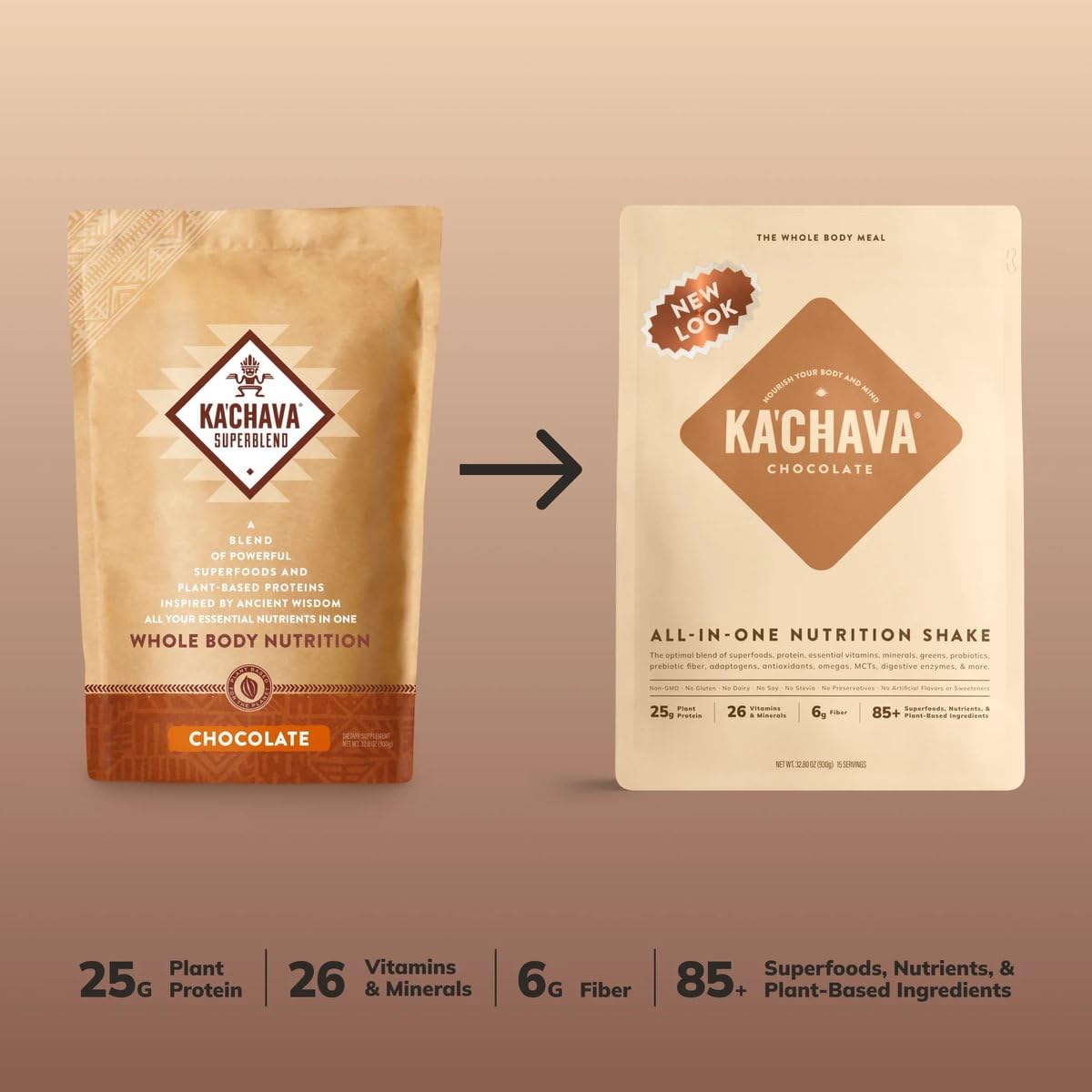 Ka’Chava All-In-One Nutrition Shake Blend, 85+ Superfoods & Nutrients, Meal Replacement, Greens Plant-Based Superfood Powder Protein Drink, Digestive Enzymes & Probiotics, Vegan Dairy Gluten Free, 2Lb