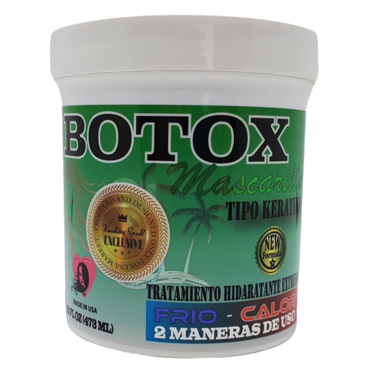 Kachita Spell Botox4Hair Treatment Original. What is a Botox Hair Treatment The Hair Botox for Hair is the latest, non-invasive, repairing treatment formulated to restore vitality to hair that has been damaged by chemical processes, straightening, and blow-drying. This effective treatment promises to make your dull and aging hair look young and healthy again. The formula generates its rejuvenating power from a blend of powerful antioxidants, proteins, and essential nutrients. The Botox for Hair or Botox Capilar solution fills cracks in the hair shaft, replenishes lost protein, and it also provides intensive hydration, repairs split ends, reduces frizz, and adds a beautiful shine to your hair. The treatment nourishes strands from the inside out and gives the hair a smoothing effect without taking away volume. Made in USA Instruction: How to use HOT Way: Wash and rinse your hair two times with Kachita Spell sulfate-free shampoo. Remove excess of water from the hair and apply the product uniformly. Use a comb to get it to distribute the product on the surface as well as inside the hair. Cover the hair with a plastic cap and put it in the pedestal dryer between 15 to 20 minutes. Then rinse and continue to dry with a hand dryer and finally use the flat iron steam. How to use COLD Way: Wash and rinse your hair two times with shampoo Kachita Spell sulfate-free. Remove excess water from the hair and apply the product evenly. Use a comb to get the product distributed on both the surface and inside the hair. Leave the treatment for 8 - 10 minutes. Finally rinse the hair and dry with a towel. Note: The smoothing effect will be gradual in very curly and resistant hair. At each application, the affect will be stronger. We recommend a 15-days pause between applications. BotoxMax made in USA