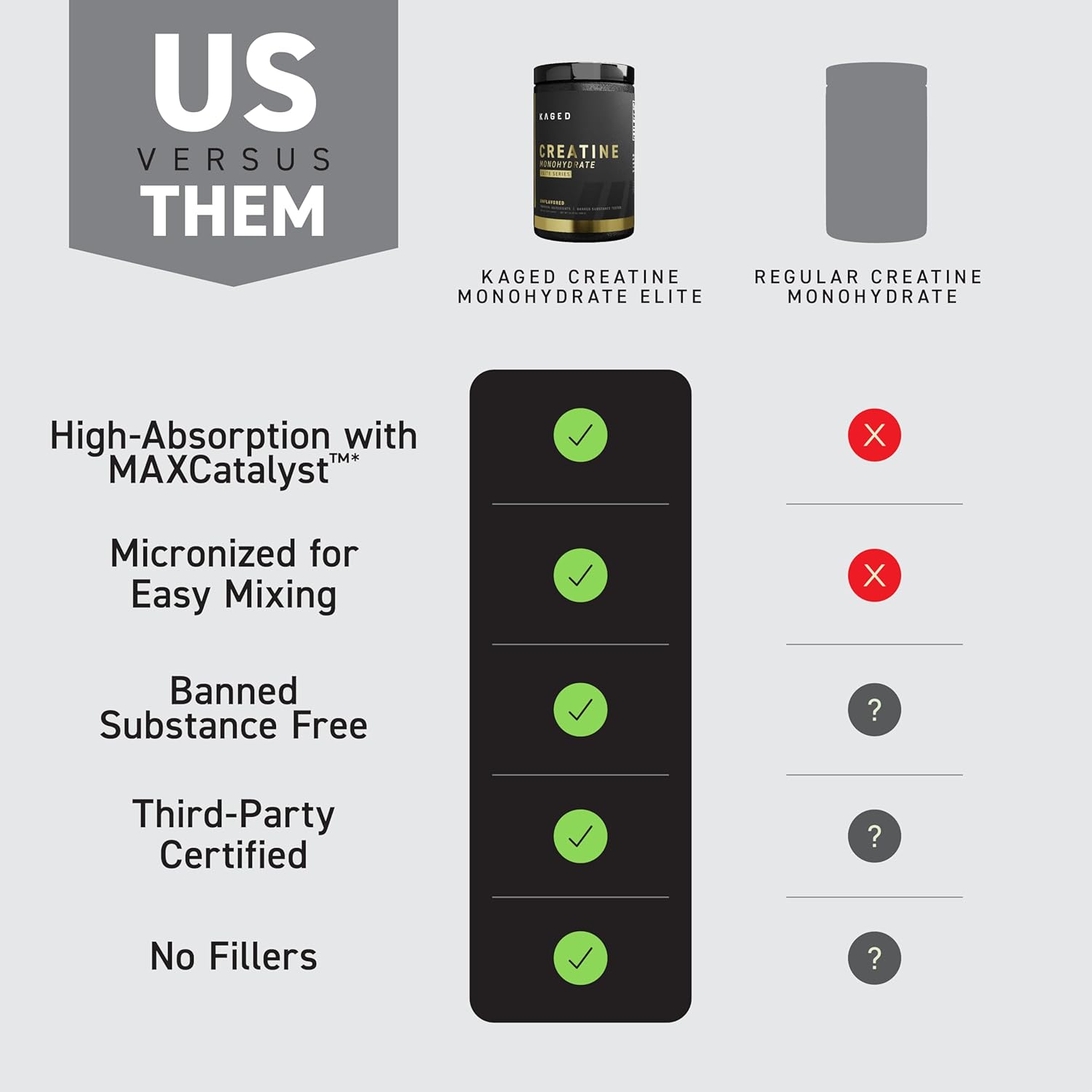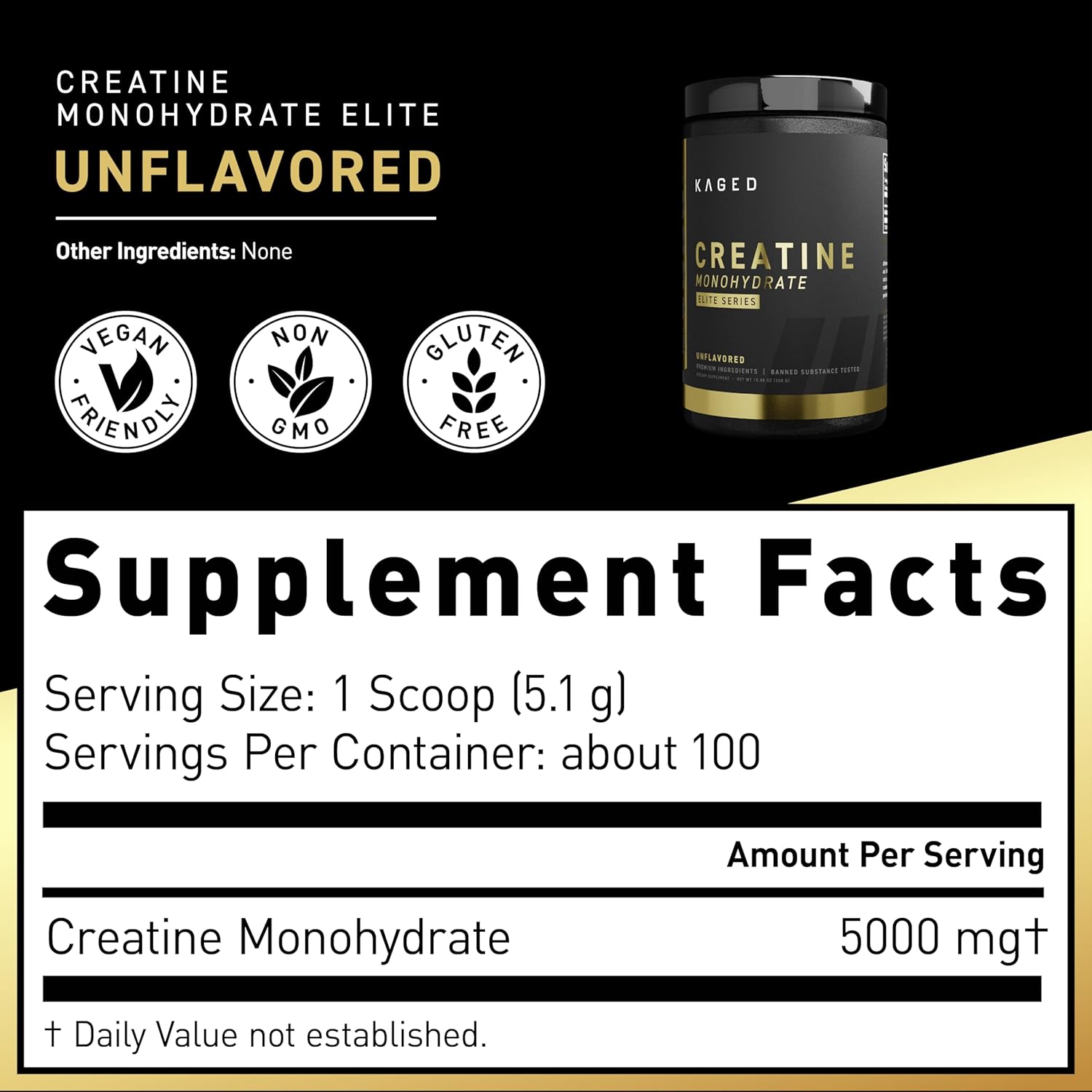 Kaged Creatine Monohydrate Elite - High Absorption Creatine With Maxcatalyst - Unflavored Powder - 60 Servings