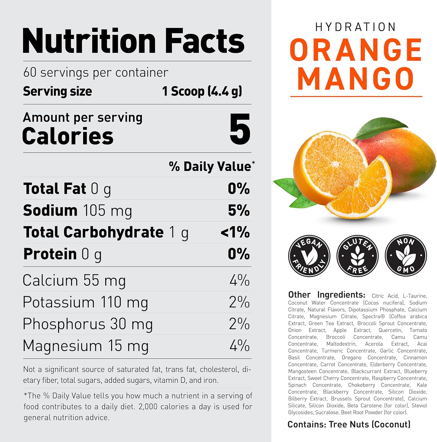 Kaged Electrolyte Hydration Powder Hydracharge Orange Mango Sports Drink For Men And Women Pre, Post, Intra Workout Supplement 60 Servings