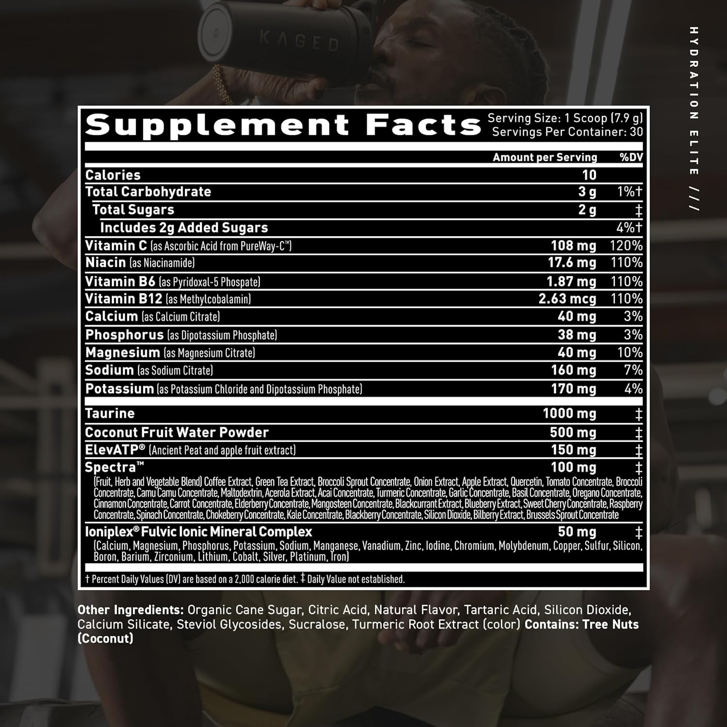 DESCRIPTION : Kaged Electrolytes, Hydration Elite, Premium Electrolyte Powder Supplement, Intra Workout, Post Workout, Lemon Lime, 30 Servings
