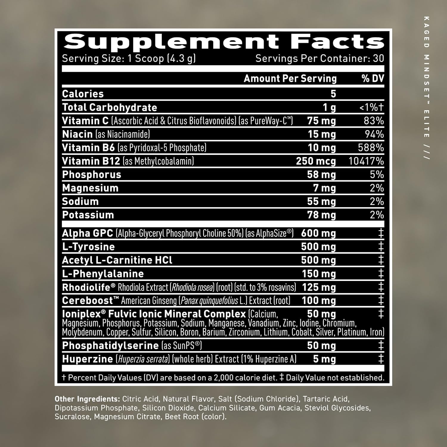 The Ultimate Nootropic: Kaged Mindset Elite Contains A Powerful Blend Science-Backed, Premium Ingredients Including 1,200Mg Of Alpha-Gpc For Cognitive Function, 1,000Mg Of L-Tyrosine For Focus, 1,000Mg Of Acetyl L-Carnitine For Mental Clarity, And 300Mg Of L-Phenylalanine To Support Mood Enhancement