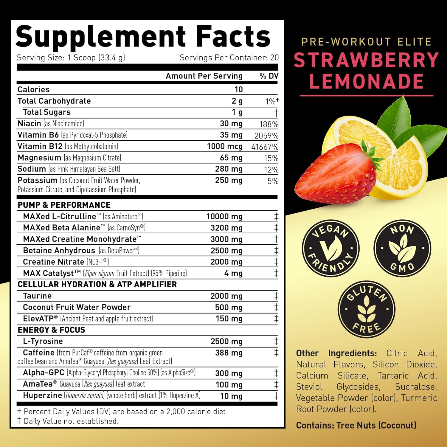 Kaged Pre Workout, Pre-Workout Elite Powder For Men And Women (20 Servings (Pack Of 1), Strawberry Lemonade (Elite))