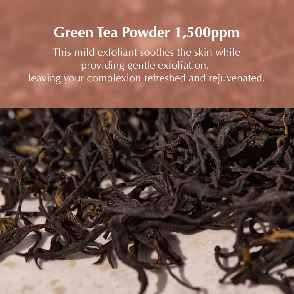Moisture Balance: 1,500 ppm of green tea to provide fresh moisture and soothing dehydrated skin, maintaining a healthy moisture balance