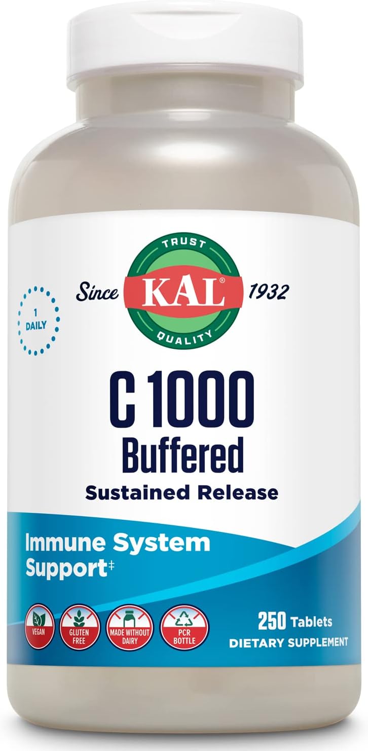 KAL C-1000 Buffered Sustained Release Tablets, 1000 mg, 250 Count,Rich in Antioxidant Vitamin C,Sustained Release Tablets,Suitable for Vegetarians
