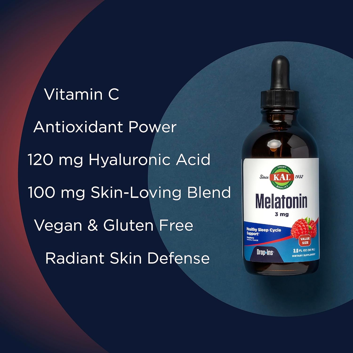 Kal Melatonin 3Mg Dropins, Fast Acting Sleep Aid, Melatonin Drops For Calming Relaxation And Healthy Sleep Cycle Support, Natural Raspberry Flavor, 60 Day Guarantee, Approx. 88 Servings, 3 Fl Oz