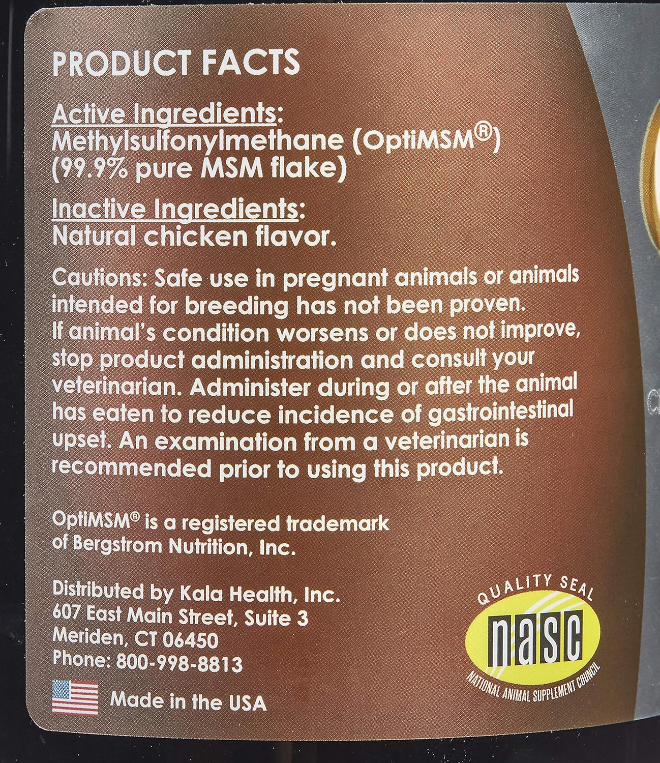 About this item Premium Quality MSM: Uses pure OptiMSM, ensuring a high-quality methylsulfonylmethane source for your dog's well-being. Supports Joint Mobility: Helps maintain joint flexibility and comfort, promoting active movement and overall joint health for your dog. Enhances Skin & Coat: Supports the maintenance of healthy skin and a shiny, glossy coat, contributing to your dog's appearance and grooming. Great Alternative for Large Dogs: An excellent hip and joint supplement alternative for large dogs, providing essential support for their mobility and comfort at an affordable value. Flavor Options Available: Available in both unflavored and natural chicken flavor to meet your dog's preferences, making it easy to incorporate into their routine. Safe & Natural Ingredients: Made without additives or preservatives, providing a pure supplement with natural ingredients to support your pet's needs. See more product details,Premium Quality MSM: Uses pure OptiMSM, ensuring a high-quality methylsulfonylmethane source for your dog's well-being,Supports Joint Mobility: Helps maintain joint flexibility and comfort, promoting active movement and overall joint health for your dog,Enhances Skin & Coat: Supports the maintenance of healthy skin and a shiny, glossy coat, contributing to your dog's appearance and grooming,Great Alternative for Large Dogs: An excellent hip and joint supplement alternative for large dogs, providing essential support for their mobility and comfort at an affordable value,Flavor Options Available: Available in both unflavored and natural chicken flavor to meet your dog's preferences, making it easy to incorporate into their routine,Safe & Natural Ingredients: Made without additives or preservatives, providing a pure supplement with natural ingredients to support your pet's needs
