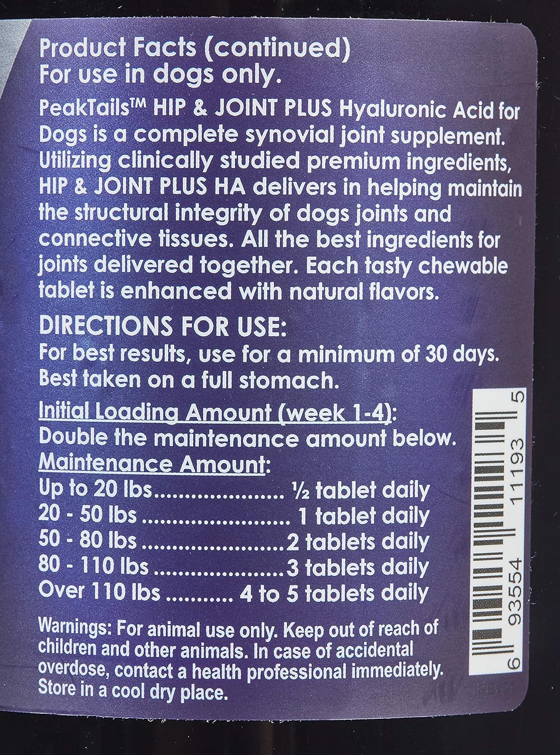 Kala Health Peaktails Hip & Joint Plus Ha For Dogs – 90 Tablets, Glucosamine, Chondroitin, Optimsm, Vitamin C & Hyaluronic Acid – Supports Joint Mobility & Comfort