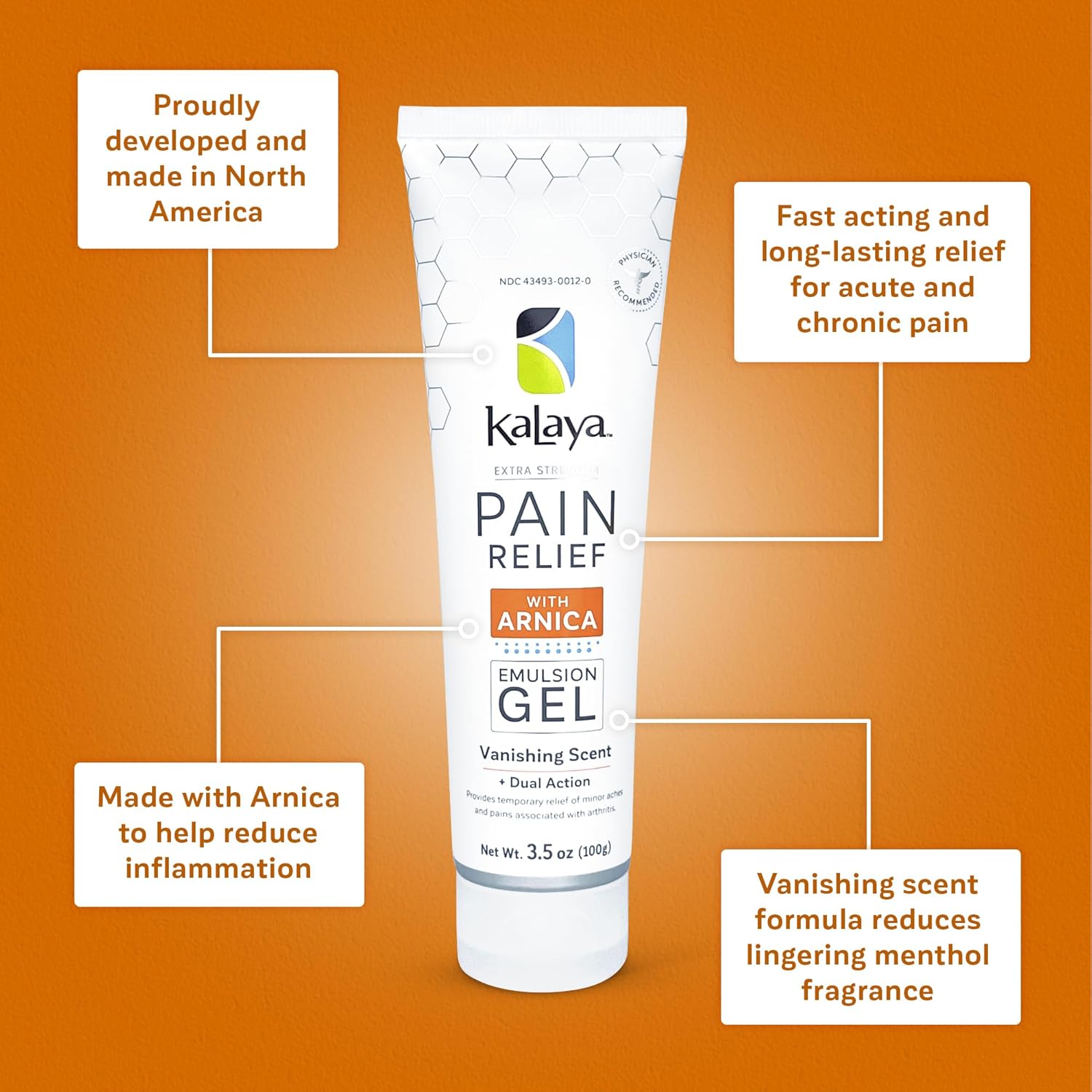 Kalaya Extra Strength Pain Relief Gel With Arnica -Fast Acting, Long Lasting, Vanishing Scent, Medically Formulated For Arthritis, Joints, Muscle, Back, Neck, Shoulder, Hand And Knee Pain