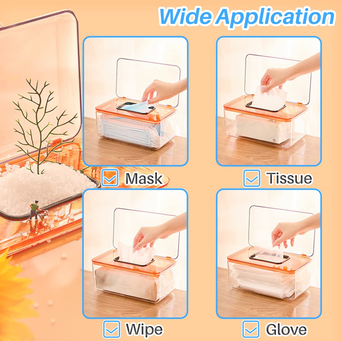 About this item Good Sealing PerformanceThe reusable baby wipe dispenser is designed with a silicone sealing ring that can keep the wipes moist and clean, protecting wipes or masks from dust and germ. Intimate DesignThe baby wipe holder dispenser with a built-in spring design makes you take out wipes easily, helping you extract the bottom wipes or masks. Moreover, the bottom non slip pad can keep the tissues case stable and prevent it from sliding. Easy to UseThe clear portable baby wipe holder with wide mouth design allows you to easily take out wipes with one hand. Besides, the transparent design can make you clearly see the amount of the remaining wipes and remind you to refill wipes in time. Superior MaterialThe baby wipe box holder is made of premium food-grade PET plastic material, safe, non toxic, non slip, dust proof, sturdy, durable, reusable and easy to clean. Wide ApplicationThe portable baby wipe dispenser with large capacity can be applied to store wipes, masks, tissues and disposable gloves etc., perfect for car, office, bedroom, living room, bathroom, kitchen, camping etc. See more product details,Good Sealing PerformanceThe reusable baby wipe dispenser is designed with a silicone sealing ring that can keep the wipes moist and clean, protecting wipes or masks from dust and germ,Intimate DesignThe baby wipe holder dispenser with a built-in spring design makes you take out wipes easily, helping you extract the bottom wipes or masks. Moreover, the bottom non slip pad can keep the tissues case stable and prevent it from sliding,Easy to UseThe clear portable baby wipe holder with wide mouth design allows you to easily take out wipes with one hand. Besides, the transparent design can make you clearly see the amount of the remaining wipes and remind you to refill wipes in time,Superior MaterialThe baby wipe box holder is made of premium food-grade PET plastic material, safe, non toxic, non slip, dust proof, sturdy, durable, reusable and easy to clean,Wide ApplicationThe portable baby wipe dispenser with large capacity can be applied to store wipes, masks, tissues and disposable gloves etc., perfect for car, office, bedroom, living room, bathroom, kitchen, camping etc