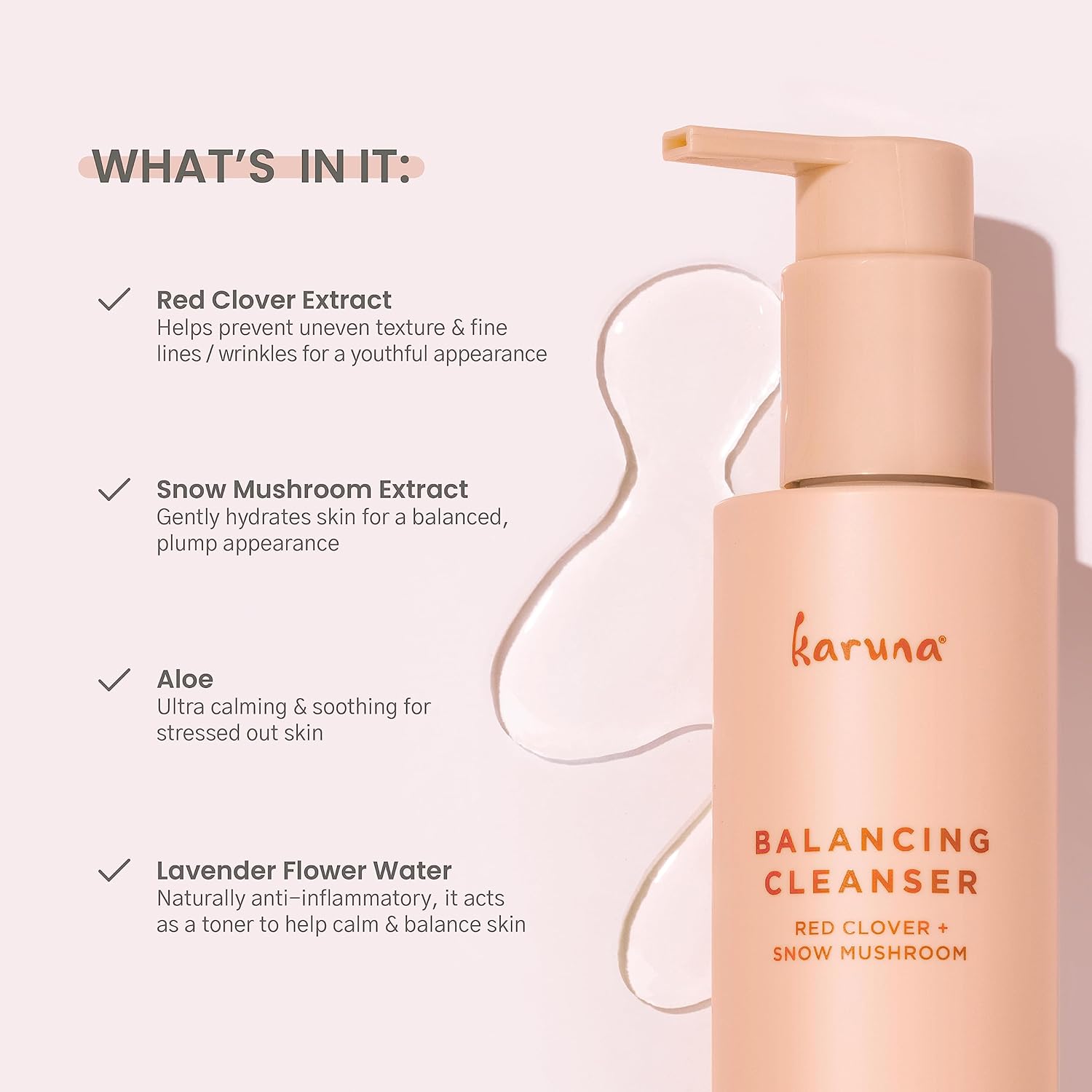 Karuna Balancing Facial Cleanser With Red Clover, Snow Mushroom, Lavender Flower Water, Hydrating, Soothing Foaming Face Wash, Facial Cleanser, 150 Ml