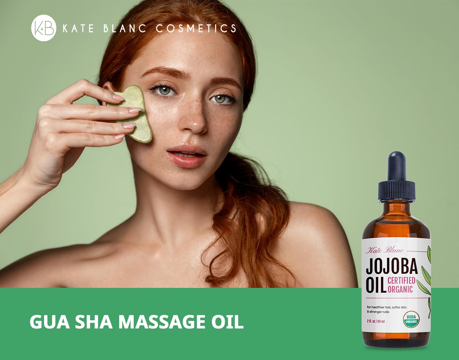 Kate Blanc Cosmetics Jojoba Oil For Hair, Face & Skin. Gua Sha Oil For Face Massage And Dermaplaning (4Oz, Organic, 100% Pure, Natural)
