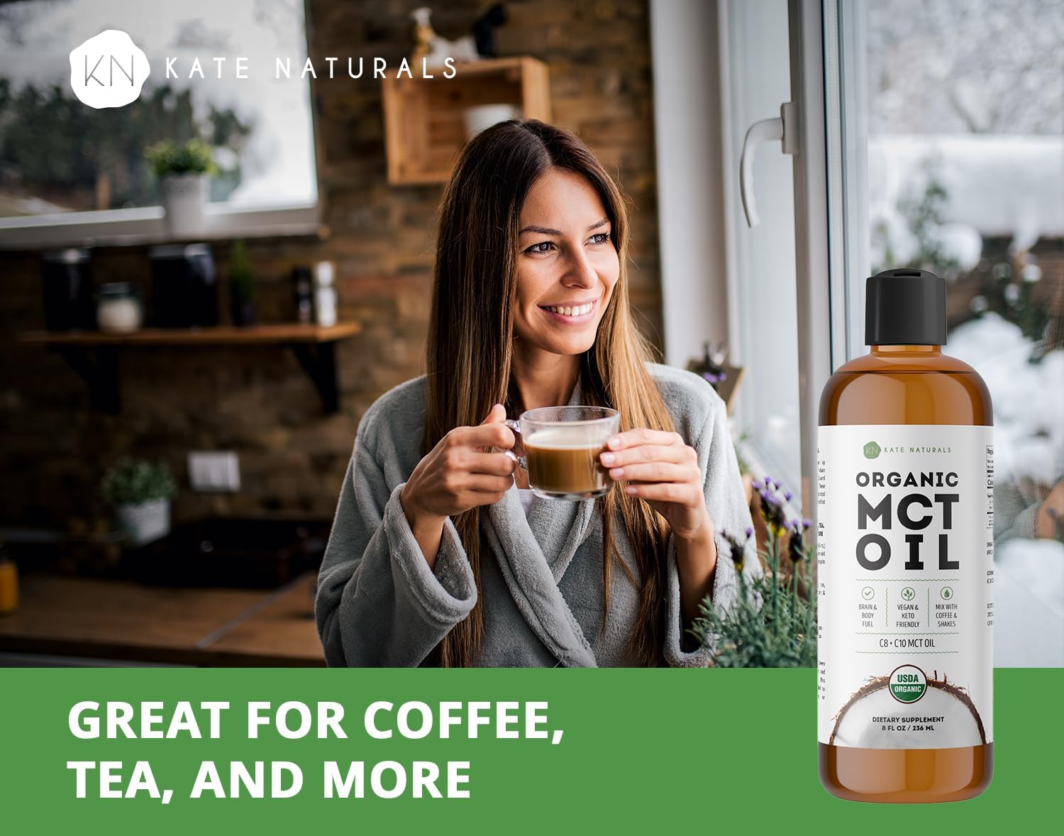 Kate Naturals Mct Oil For Coffee & Keto (8Oz) Usda Certified Organic Mct Oil Liquid With Only C8 & C10. Odorless Fuel For Body & Mind. No Aftertaste