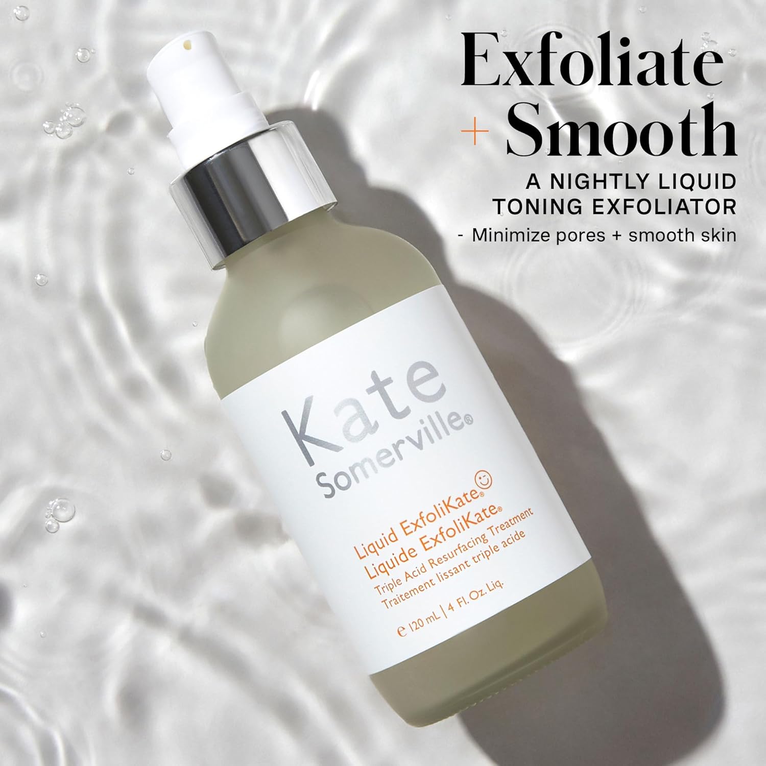 Kate Somerville Liquid ExfoliKate β Triple Acid Resurfacing Treatment, Clinically Formulated AHA Overnight Facial Exfoliator, Smooths Skin and Minimizes Pores, 4 Fl Oz