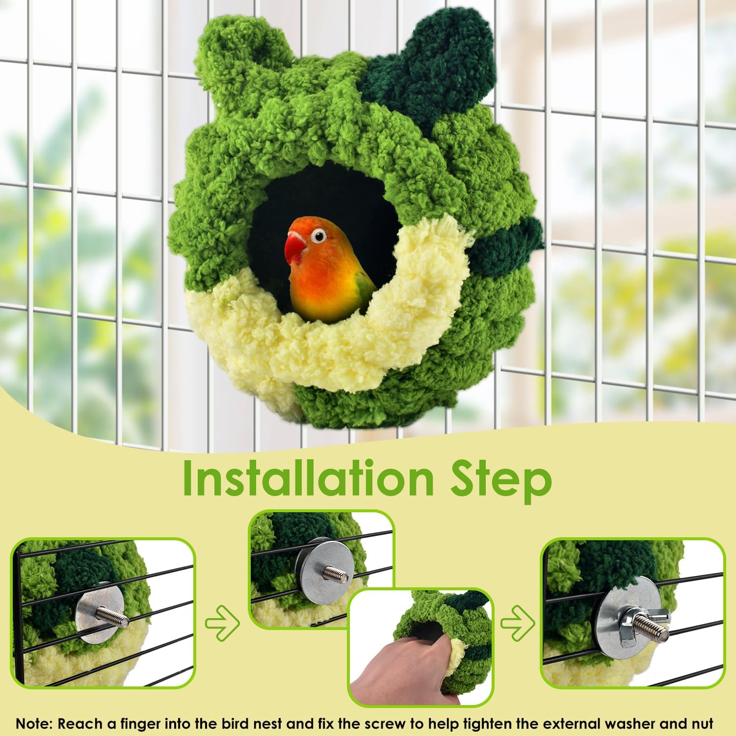 Easy To Install: With Metal Washer, Screw And Nut For Easily Fixing The Bird Bed Nest In The Bird Cage. Reach A Finger Into The Bird Nest And Fix The Screw To Help Tighten The External Washer And Nut