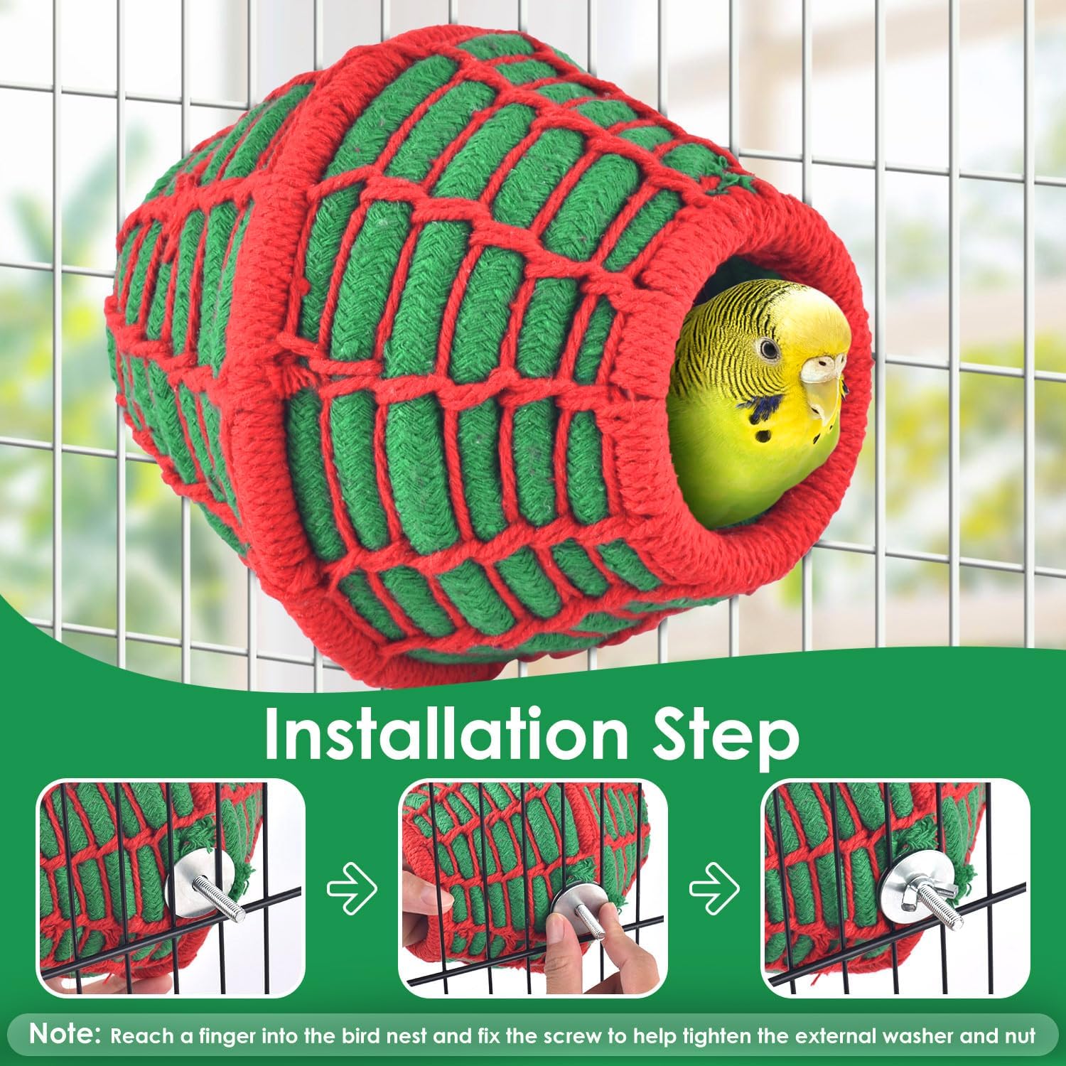 Easy To Install: With Metal Washer, Screws And Nuts For Easily Fixing The Bird Bed Nest In The Bird Cage. Reach A Finger In The Bird Nest And Fix The Screw To Help Tighten The External Washer And Nut