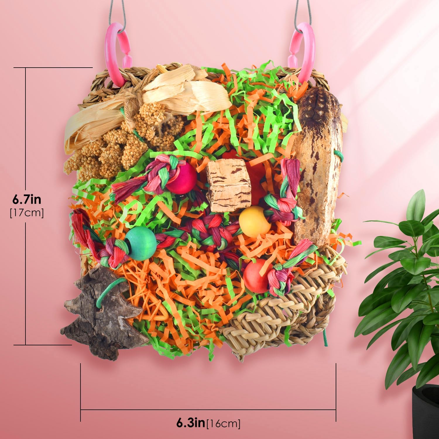 Katumo Bird Toys, Parakeet Toys Conure Grass Mat Foraging Toys Parrot Shredding Hanging Toys For Cockatiel Lovebird Parakeet Budgie Small-Medium Birds