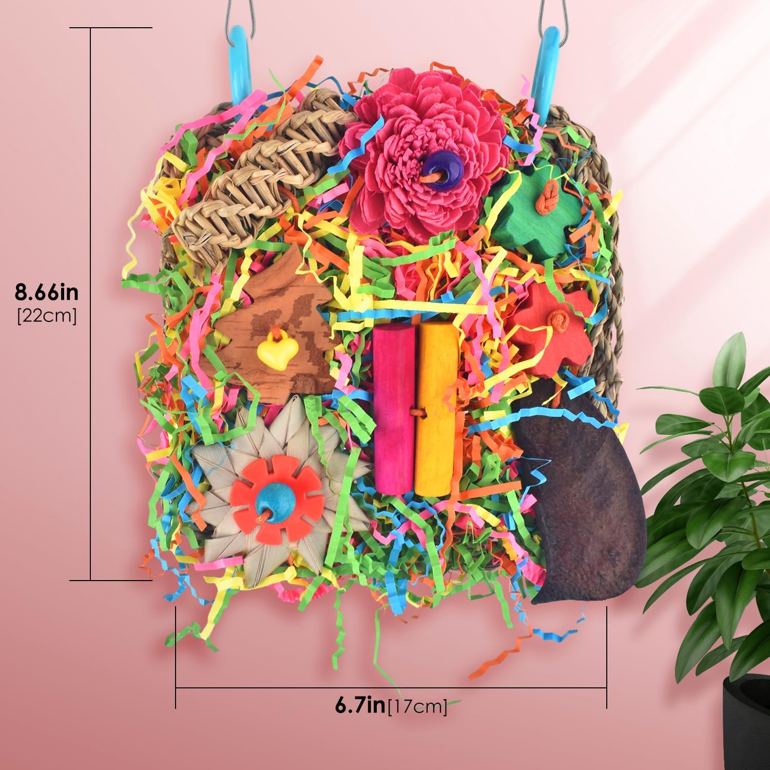 Safe Material: Katumo Bird Climbing Mat Is Made Of Natural Seagrass, Decorated With Colorful Chew Toys From Natural Wood Block, Wood Chip, Shredded Paper And Walnut , Your Bird Will Surely Loving To Chew And Play