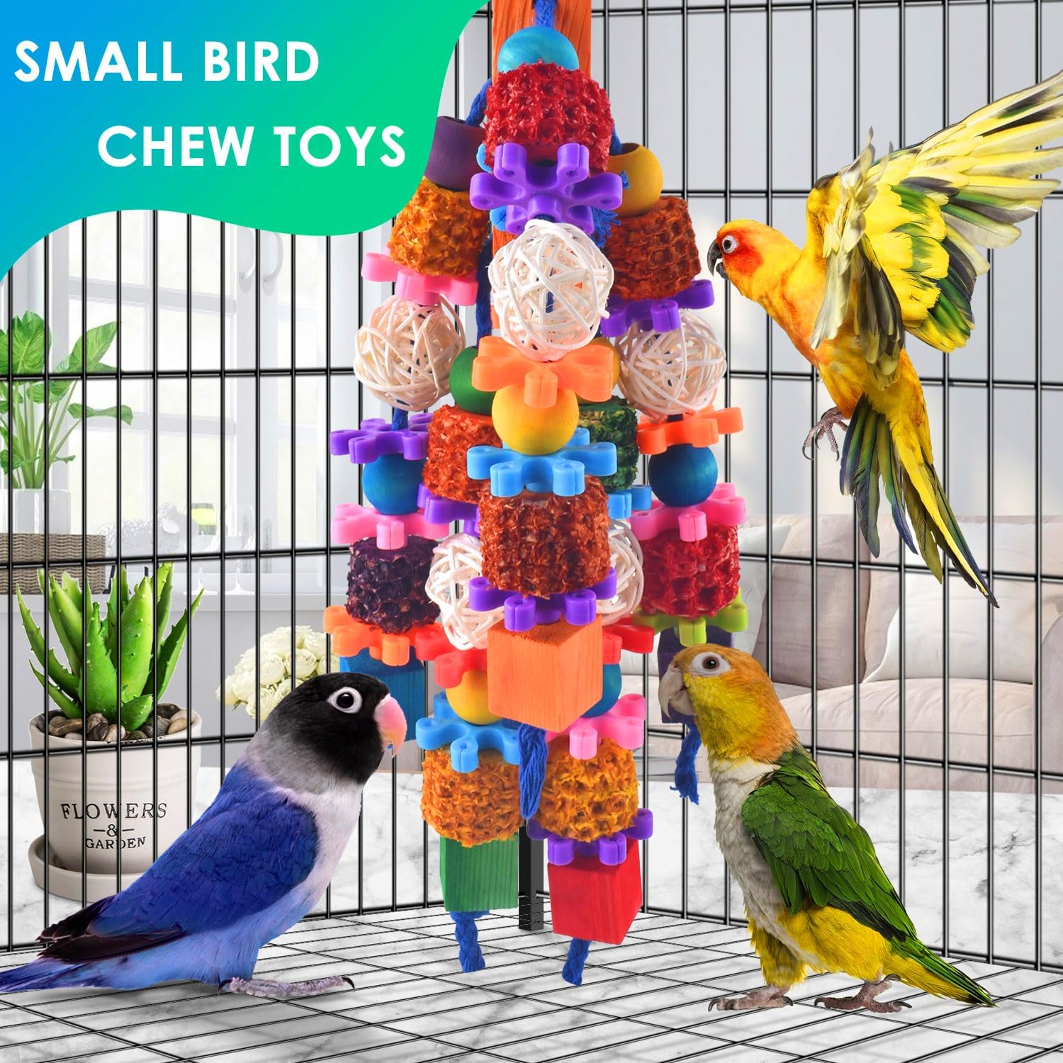 Promote Beak Health: Chewing On The Wooden Blocks,Beads,Corn Cob,And Rattan Balls Can Help Keep Your Bird'S Beak In Good Condition By Encouraging Natural Wear And Preventing Overgrowth