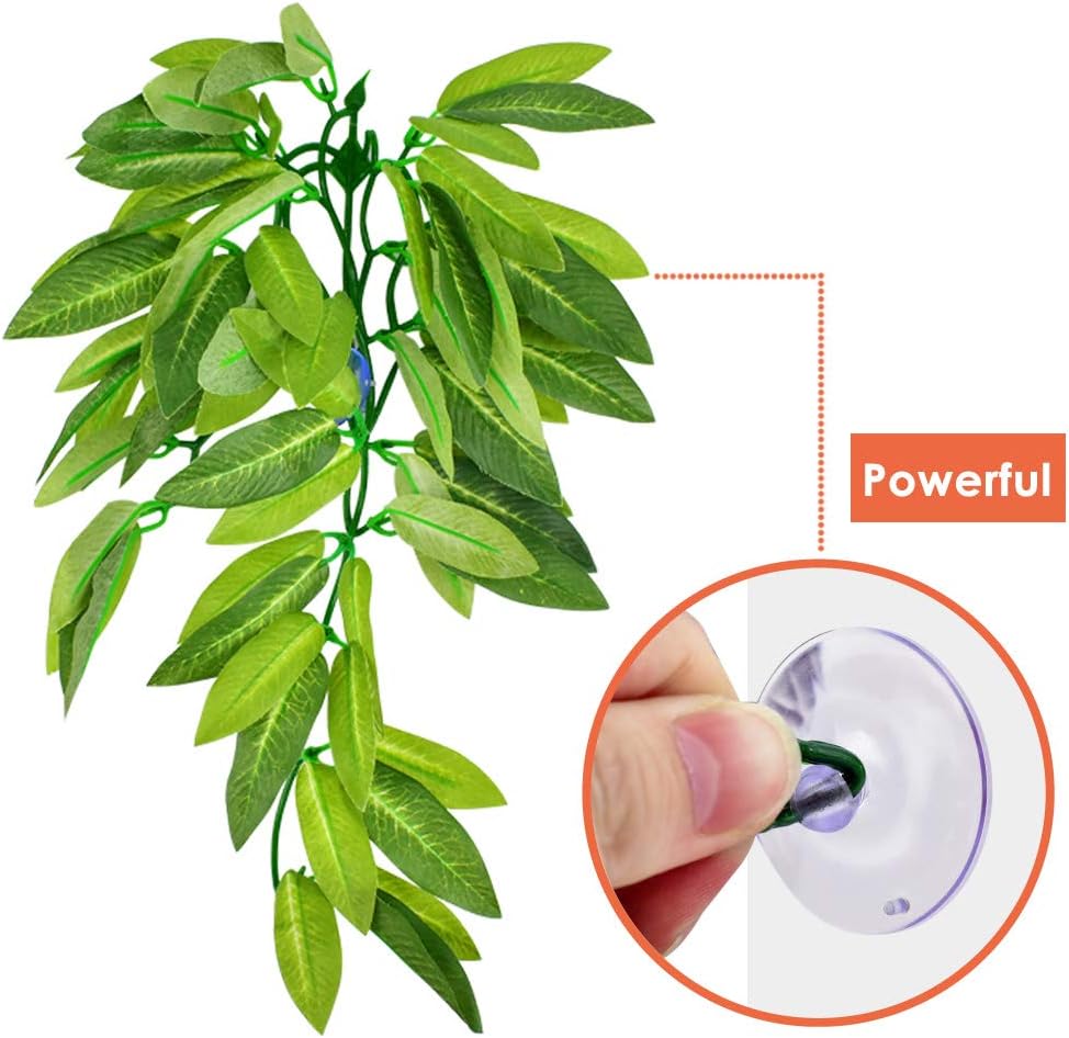 Specification: Material: High Quality Plasitc + Silk + Metal Wire Package Includes: Reptile Decoration Plant X 3 + Suction Cup X 2 [1 Yellow Hanging Plant With 1 Suction Cup + 1 Green Hanging Plant (Salix Leaf) With 1 Suction Cup + 1 Green Vine With No Suction Cup] [Pls Note: The Green Vine Has No Suction Cup] Features: 1.The Artificial Plants Are Not Subject To The Conditions Of Light, Water Quality And Carbon Dioxide Supply Device, And No Need To Apply Fertilizer. There'S No Worry About Plants Withering And Dying, Easy To Maintain. 2.With 3 Kinds Of Plants, You Can Choose The Plant Species According To Your Needs And Create A Satisfactory Environment For Your Pets. 3.Ideal For Snake, Bearded Dragon, Frogs, Toads, Salamanders And Newts Ect Amphibian Reptiles' Decorations And Aquarium Fish Tank Decorations As Well. First Using Tips: 1. Rinse And Soak The Plastic Reptile Plants In Warm Water For 15-30 Minutes, To Relax The Fabric And Give Them An Even More Realistic Look. 2. Then Place It Into The Terrarium, Use The Suction Cups To Fix It Onto The Tank Glass. Washing Tips 1.Simply Rinse Under Warm Tap Water. A More In-Depth Disinfecting Can Be Done With Bleach. 2. Use Soft Cloth To Wipe Dry Or Air Dry. Please Note: 1.Due To The Seal Function Of The Suction Cup, We Recommend To Use On Glass And Tiles, Do Not Recommend To Use On Any Kinds Of Wall Or Wooden Surface. 2. Keep Away From The Heat Lamp And The Open Fire, Never Install The Plastic Plants Under The Heater !!