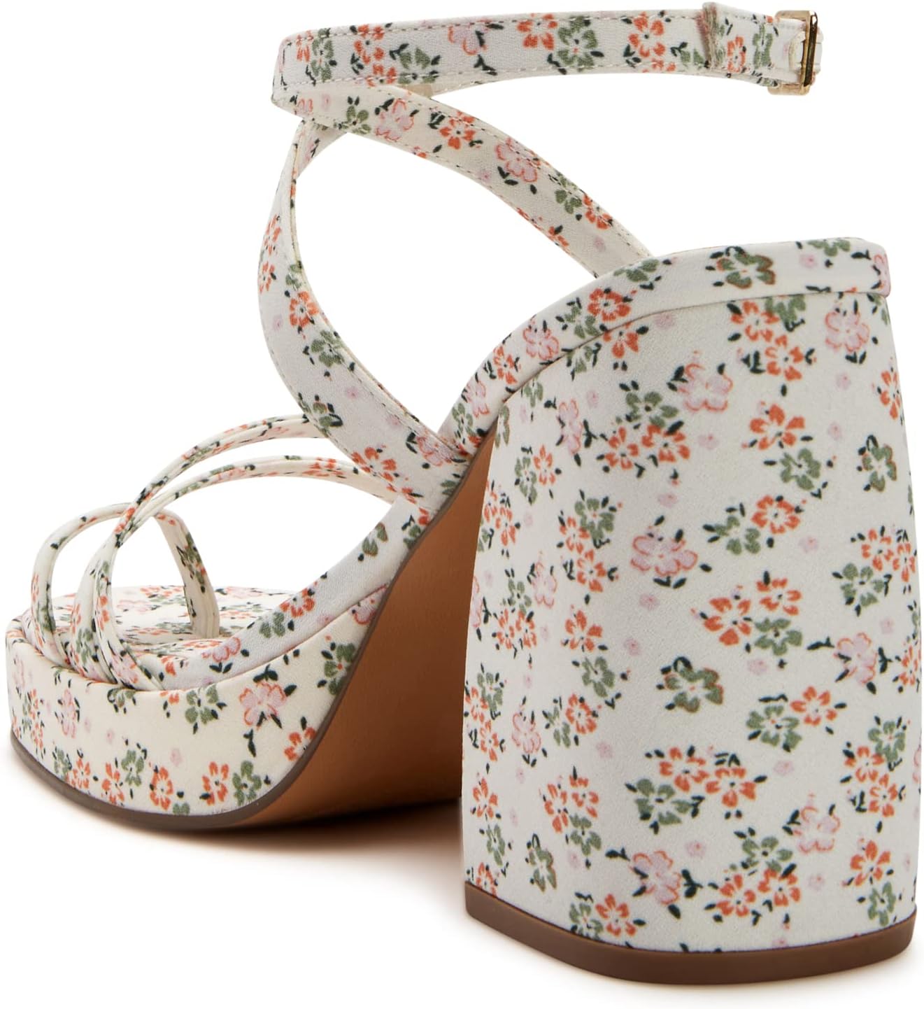This Summer, the Meadow Woven Platform Sandal by Katy Perry, Chunky High Heel, Multi Floral Detail and Adjustable Buckle Strap Closure