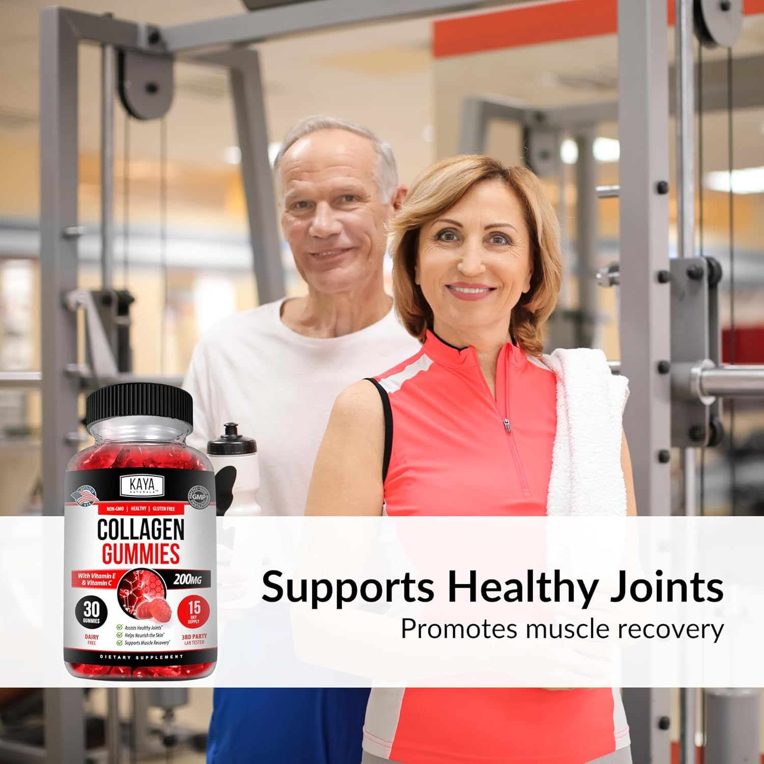 Kaya Naturals Collagen Gummies For Men & Women Supplement | Nature Made Gummies - 1000Mg Of Hydrolyzed Collagen, Vitamin C, Selenium & Biotin, Strawberry Flavor - 30 Count Gummies
