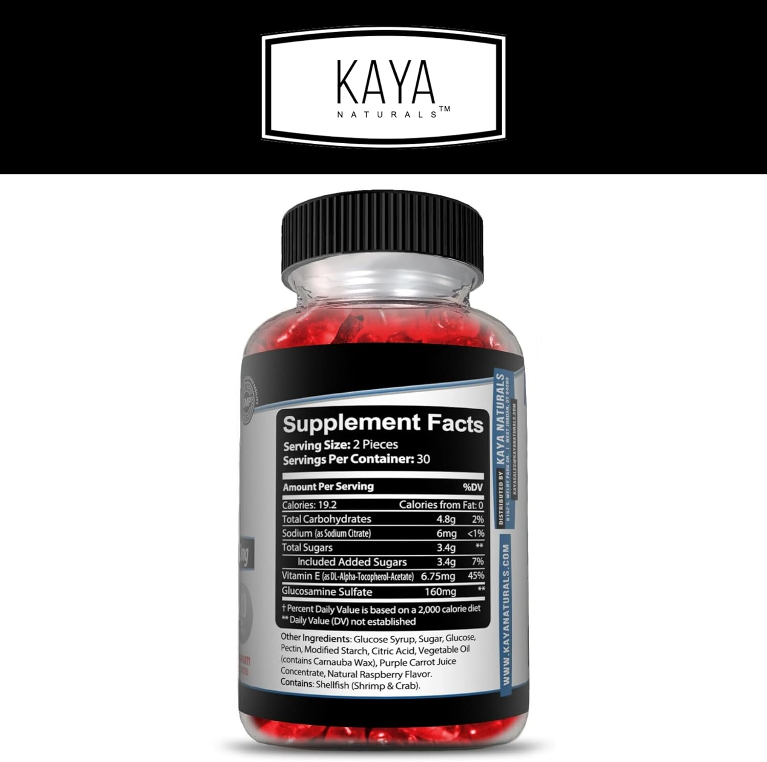 Kaya Naturals Joint Care Gummies For Back, Knees & Hands | Extra Strength Natural Joint & Flexibility Support - Glucosamine Gummies Best Immune Support For Women & Men - 60 Count