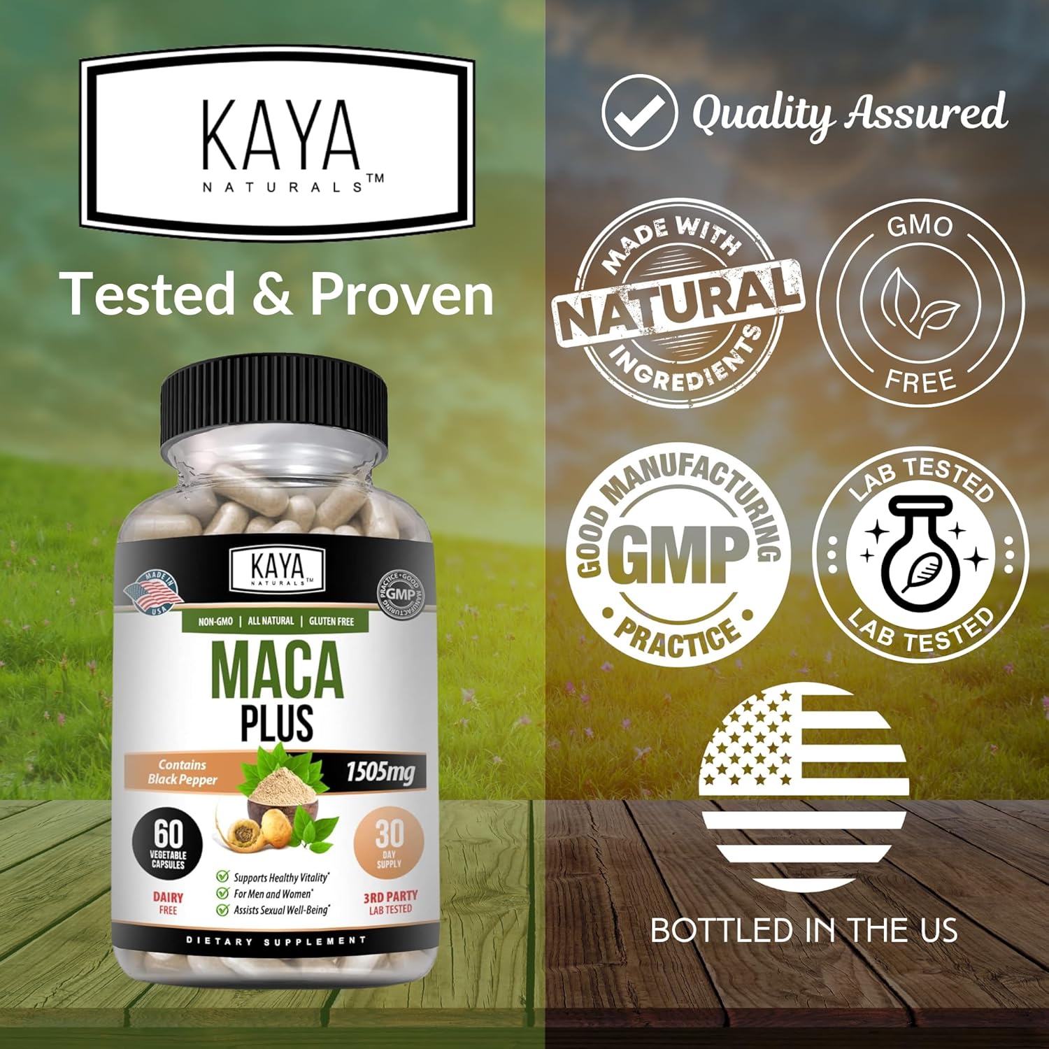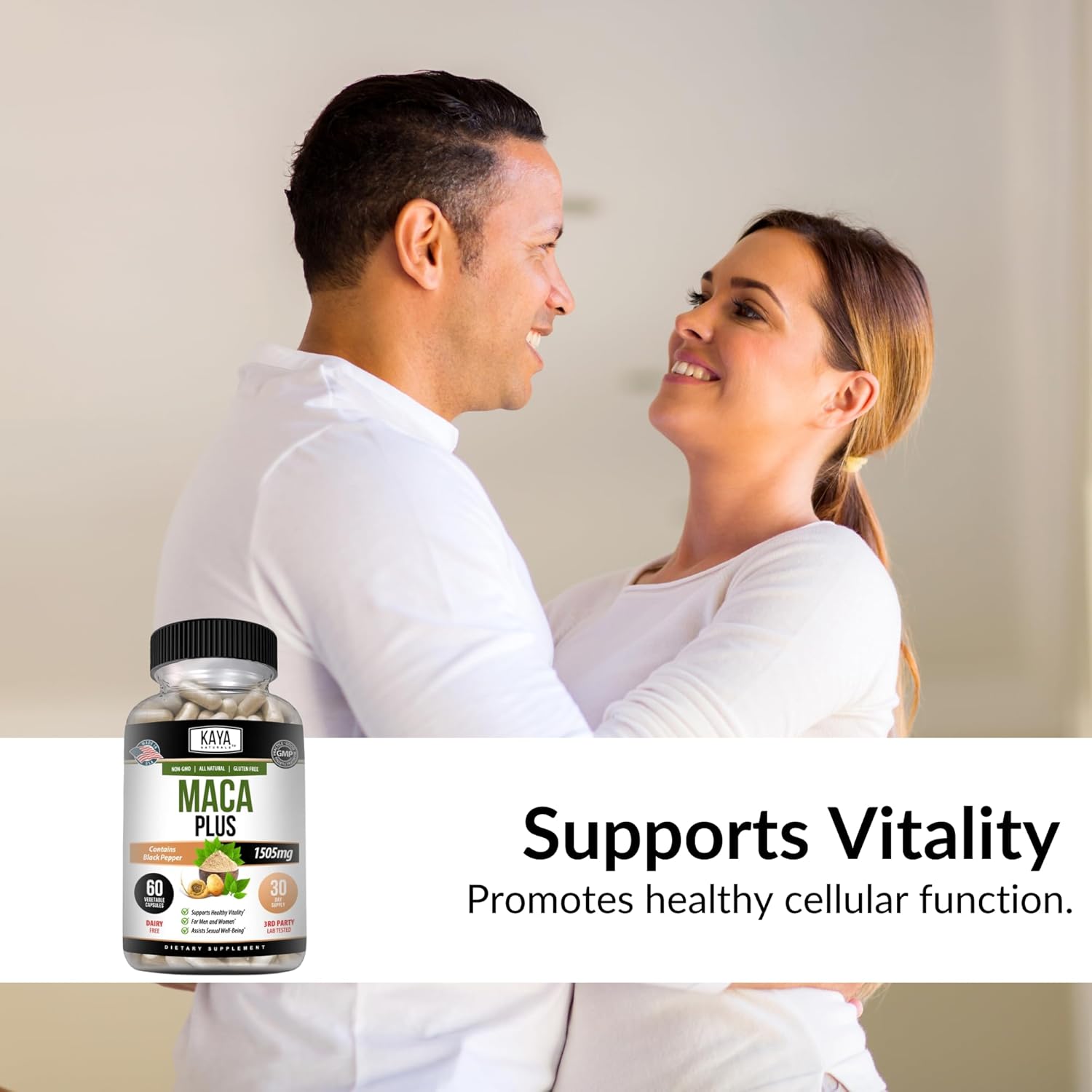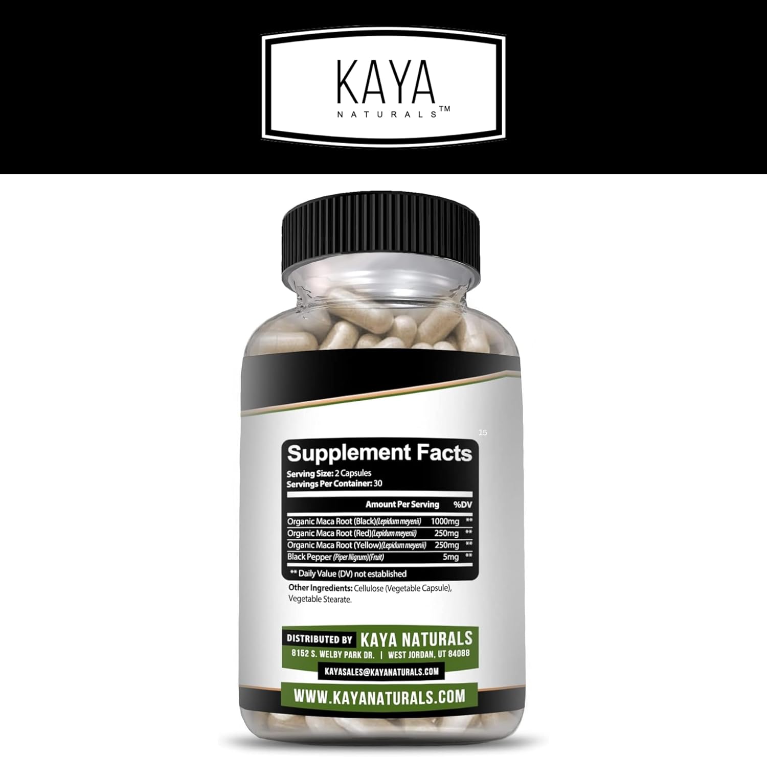 Kaya Naturals Maca Plus (60 Capsules) | Organic Maca Root Capsules For Women And Men | Black Pepper With Red, Yellow, And Black Maca Root Powder | Natural Energy Supplement And Herbal Supplement