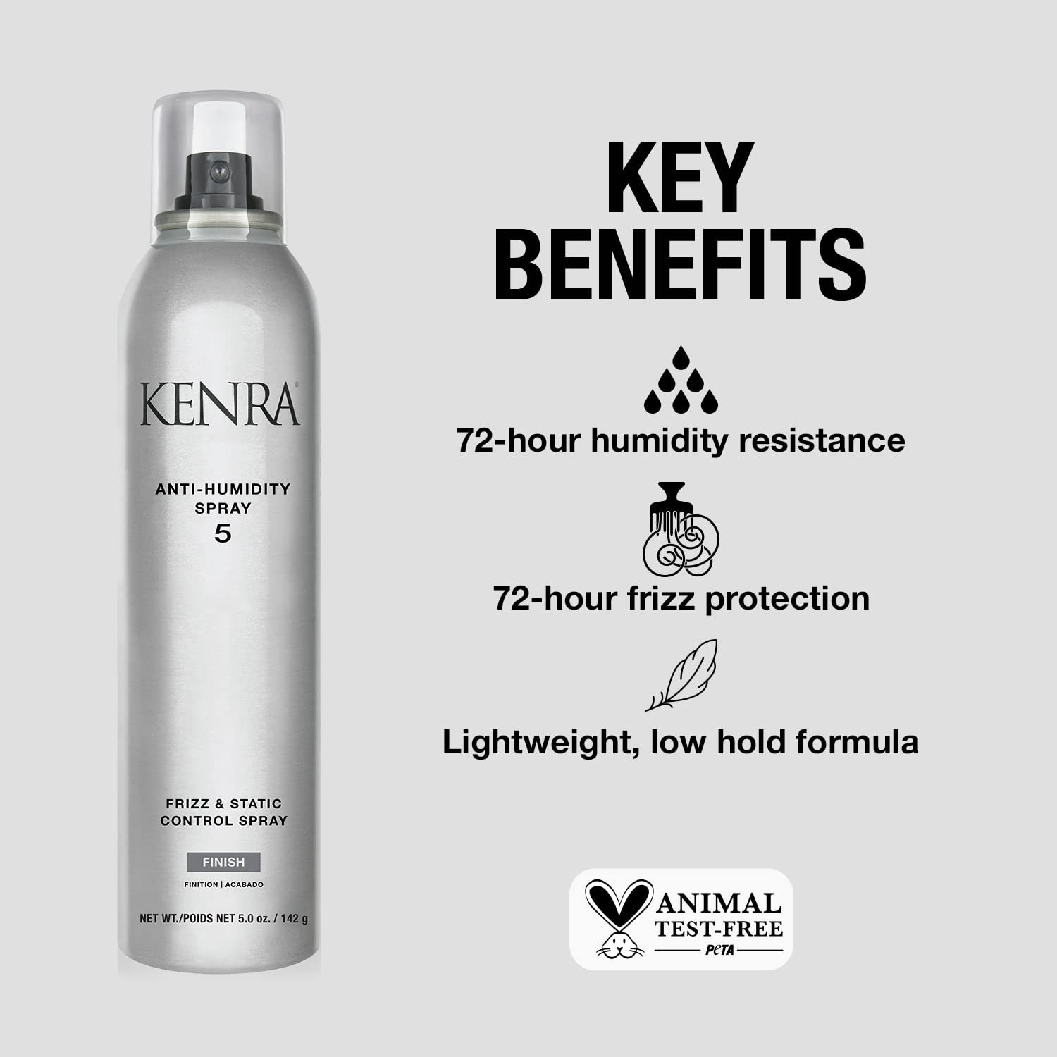 72-hour humidity resistance & protection* (*versus untreated hair)72-hour frizz protection* (*versus untreated hair)Lightweight, low hold formula. Increases manageabilityThermal protection up to 450 °F degreesKenra Anti-Humidity Spray 5