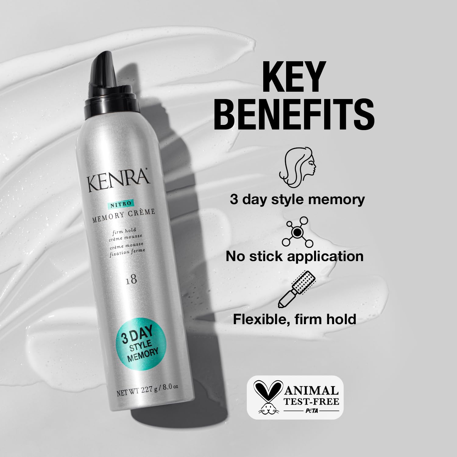 Kenra Nitro Memory Crème 18 | Firm Hold Crème Mousse | 3 Day Style Memory | 1St Nitrogen Crème Mousse | No Stick Application | All Hair Types