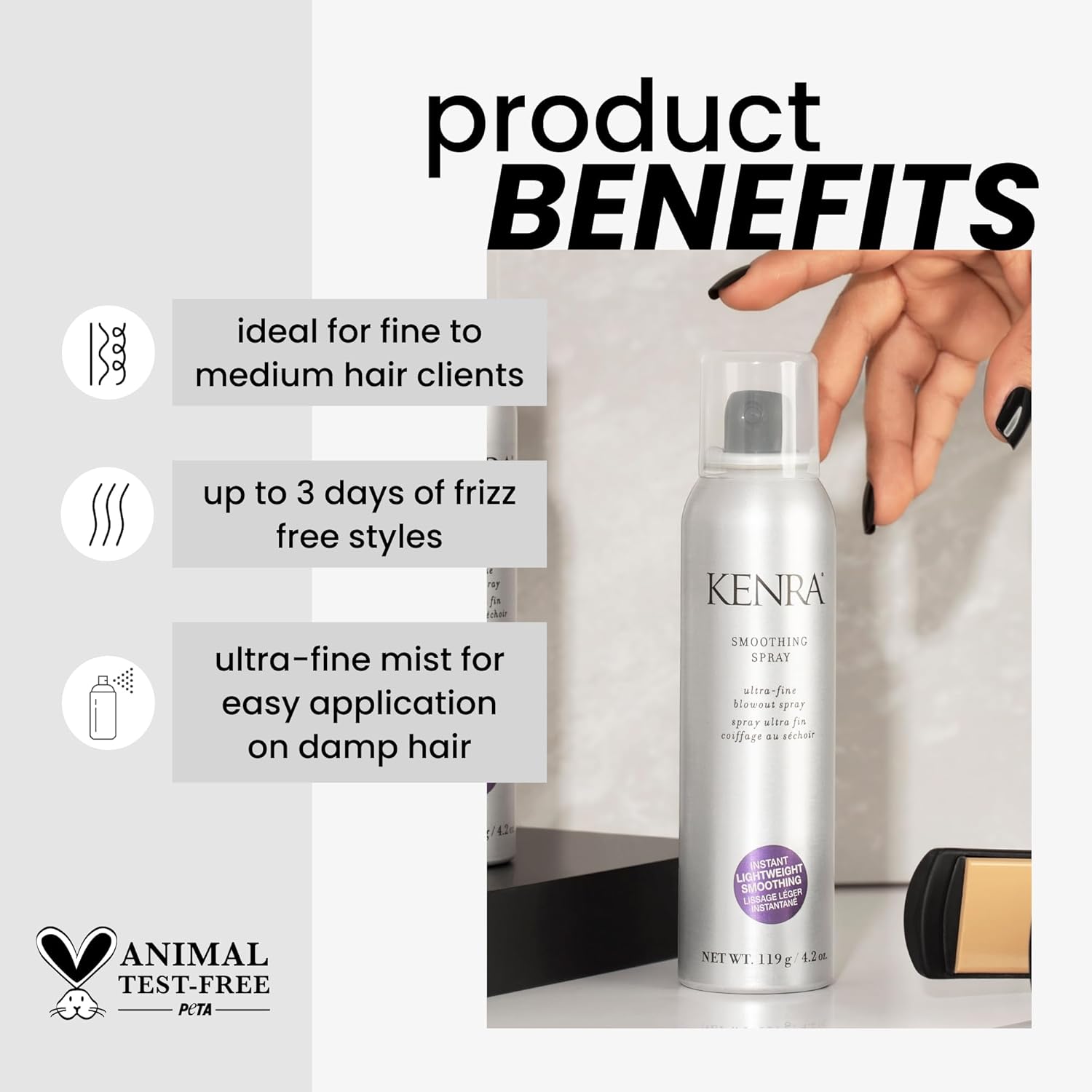 Kenra Smoothing Spray | Ultra-Fine Blowout Spray | Heat Protectant | Provides Instant Smoothing For Fine To Medium Hair | Up To 3 Days Of Frizz Control | Humidity Resistance | 4.2 Oz