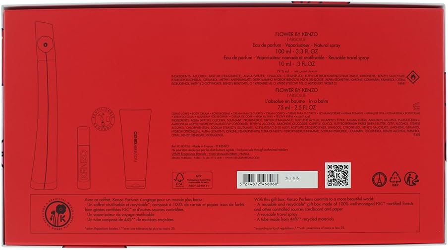 Kenzo Flower L'Absolue Eau De Parfum 3 Piece Gift Set: Eau De Parfum 100Ml - Eau