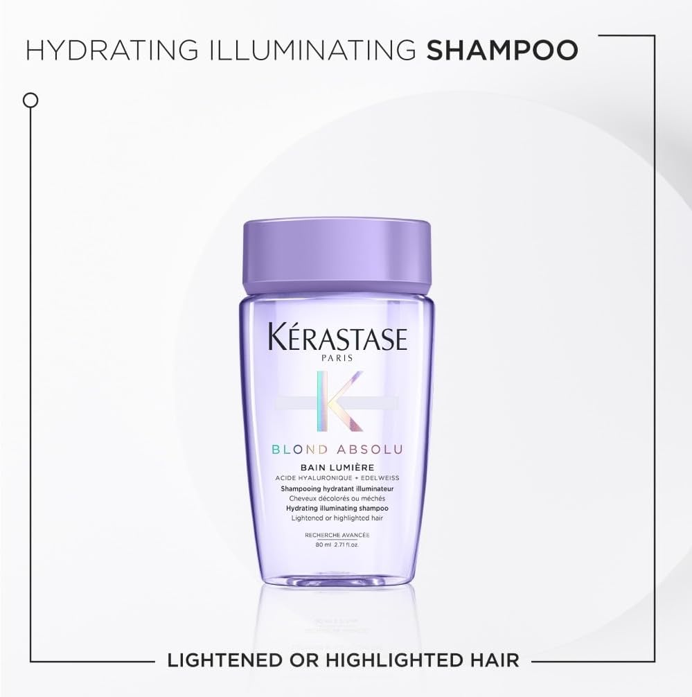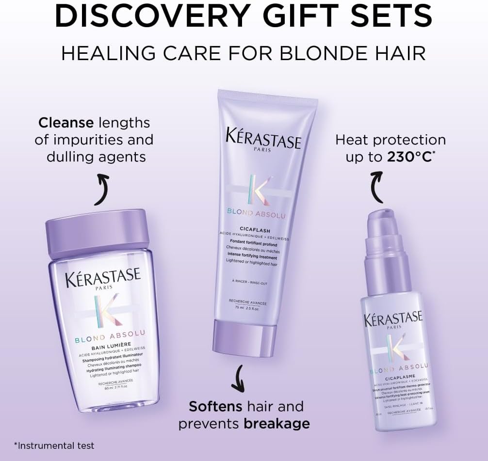 Kérastase Blond Absolu Discovery Set, With Illuminating Shampoo, Nourishing Conditioner And Fortifying Heat Protection Serum, With Hyaluronic Acid, For Blonde And Bleached Hair, Travel Size