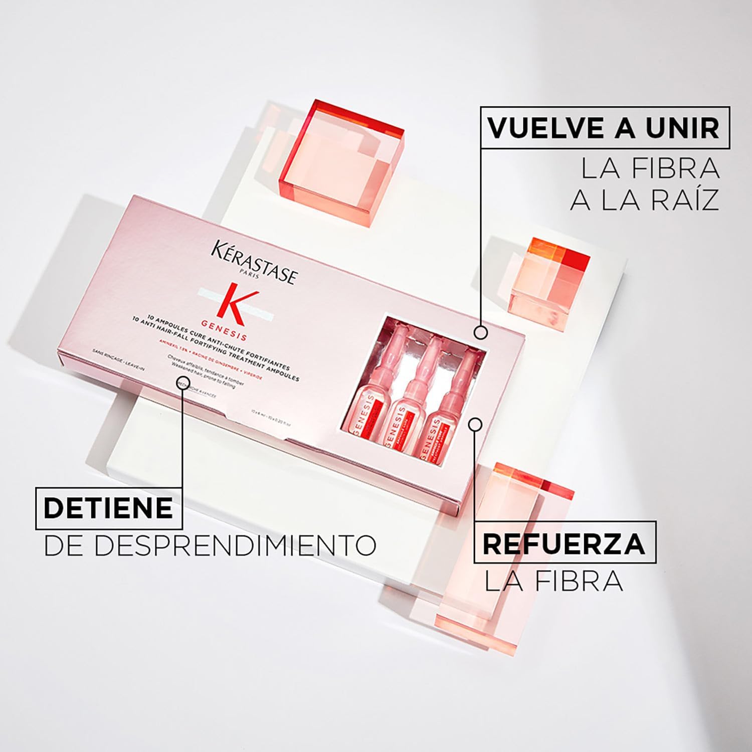 Kérastase Genesis, Anti Hair-Fall Strengthening Treatment, For Weakened Hair, With Ginger Root And Edelweiss Flower, Ampoules Cure Anti-Chute Fortifiantes, 10X6 Ml