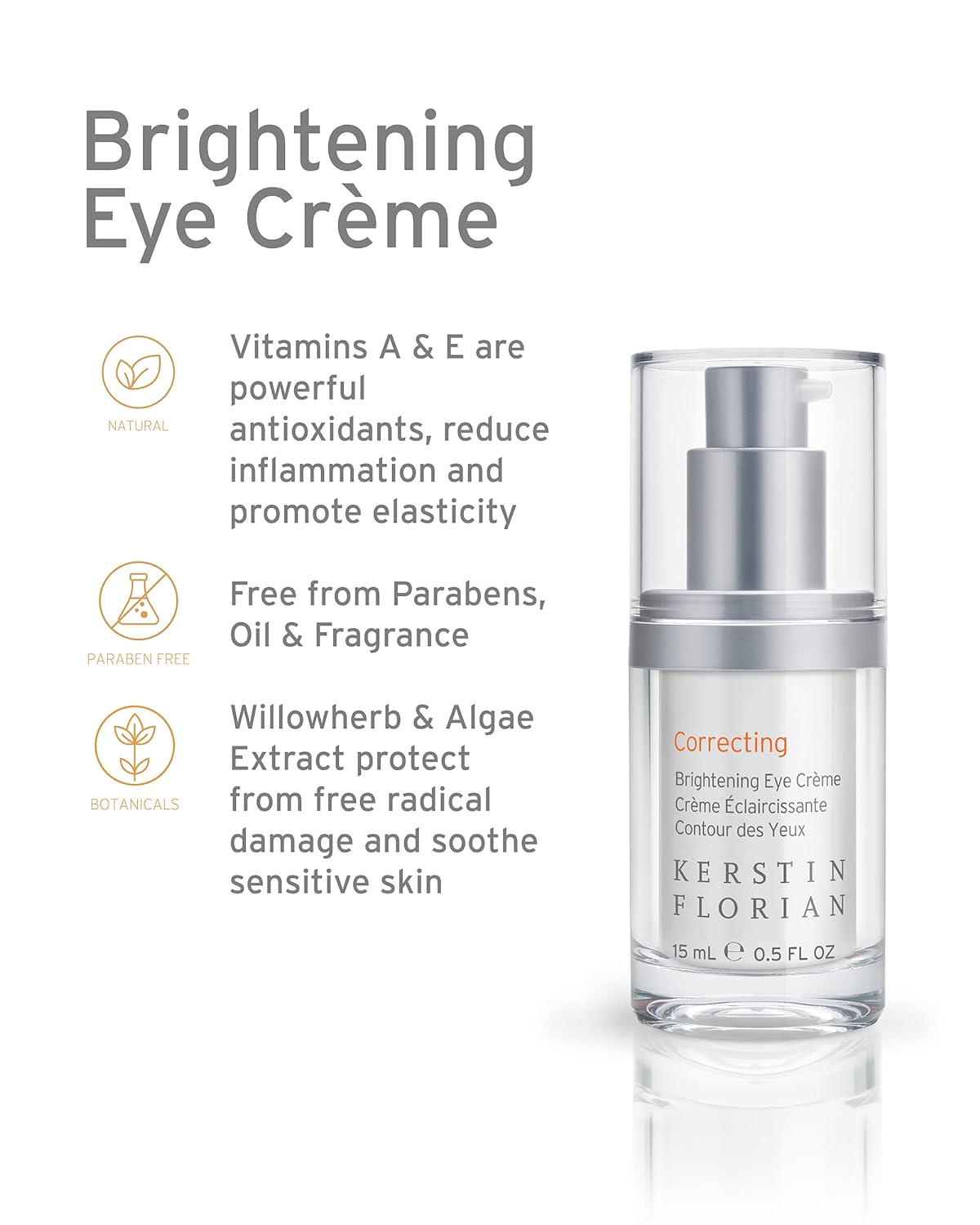 Kerstin Florian Brightening Eye Crème, Anti Aging Under Eye Cream, Effective Ingredients to Reduce Dark Circles, Puffiness, Fine Lines & Wrinkles (.5 fl oz)