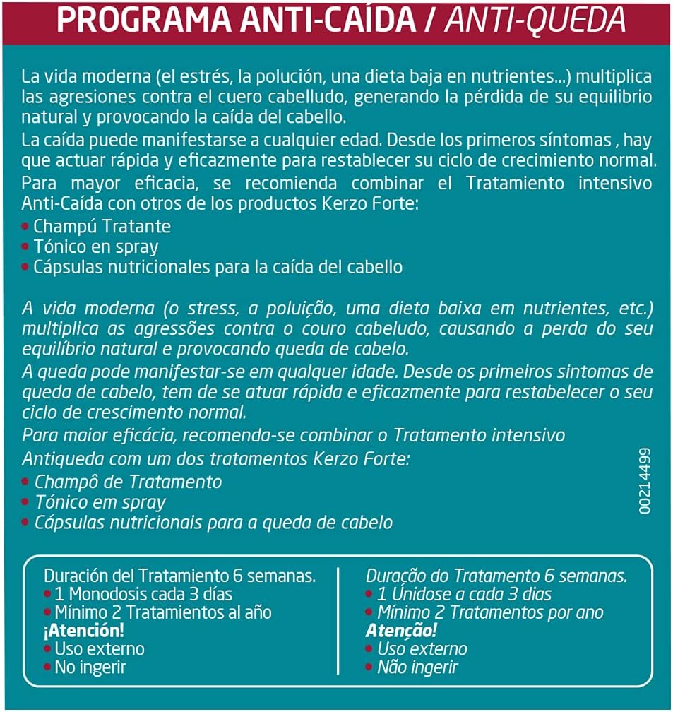 About this item KERZO Forte Tratamiento Intensive Anticaída 14 x 5 ml Quality/Durability Durability robustness Flexible design › See more product details,KERZO Forte Tratamiento Intensive Anticaída 14 x 5 ml,Quality/Durability,Durability,robustness,Flexible design